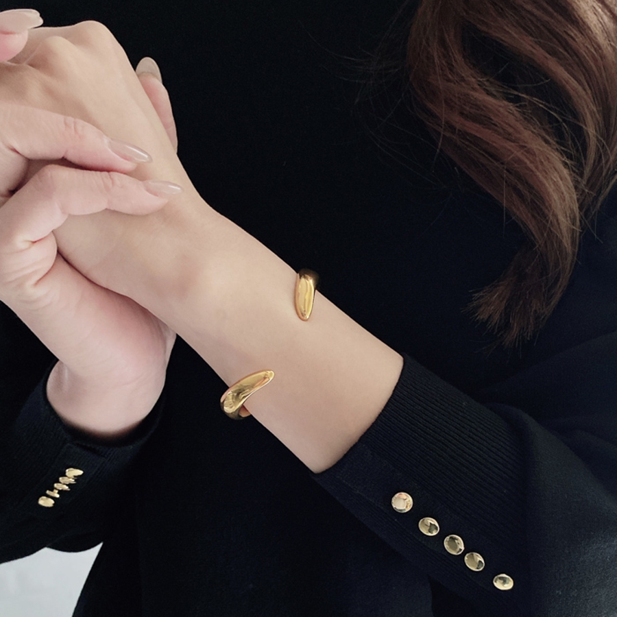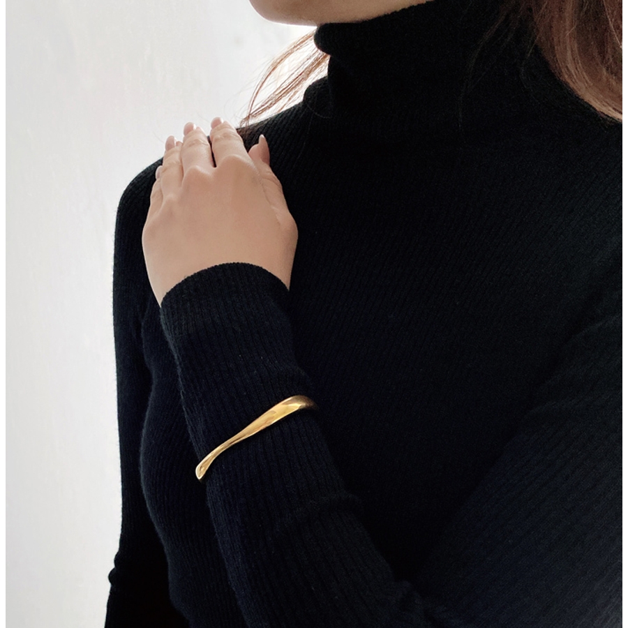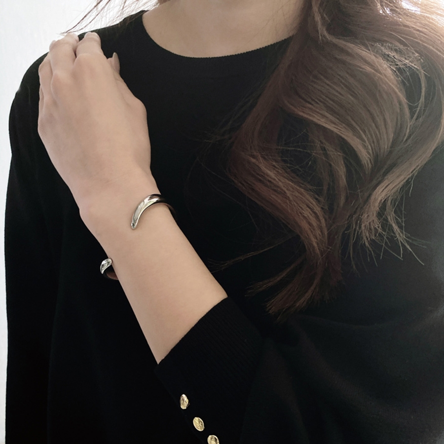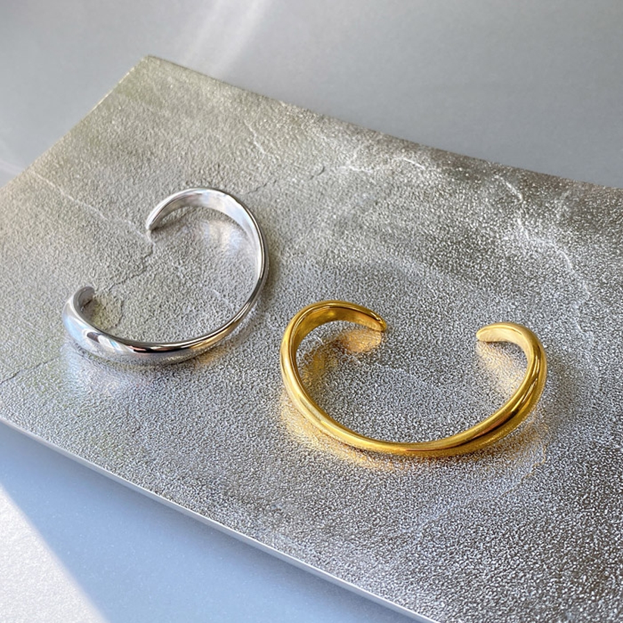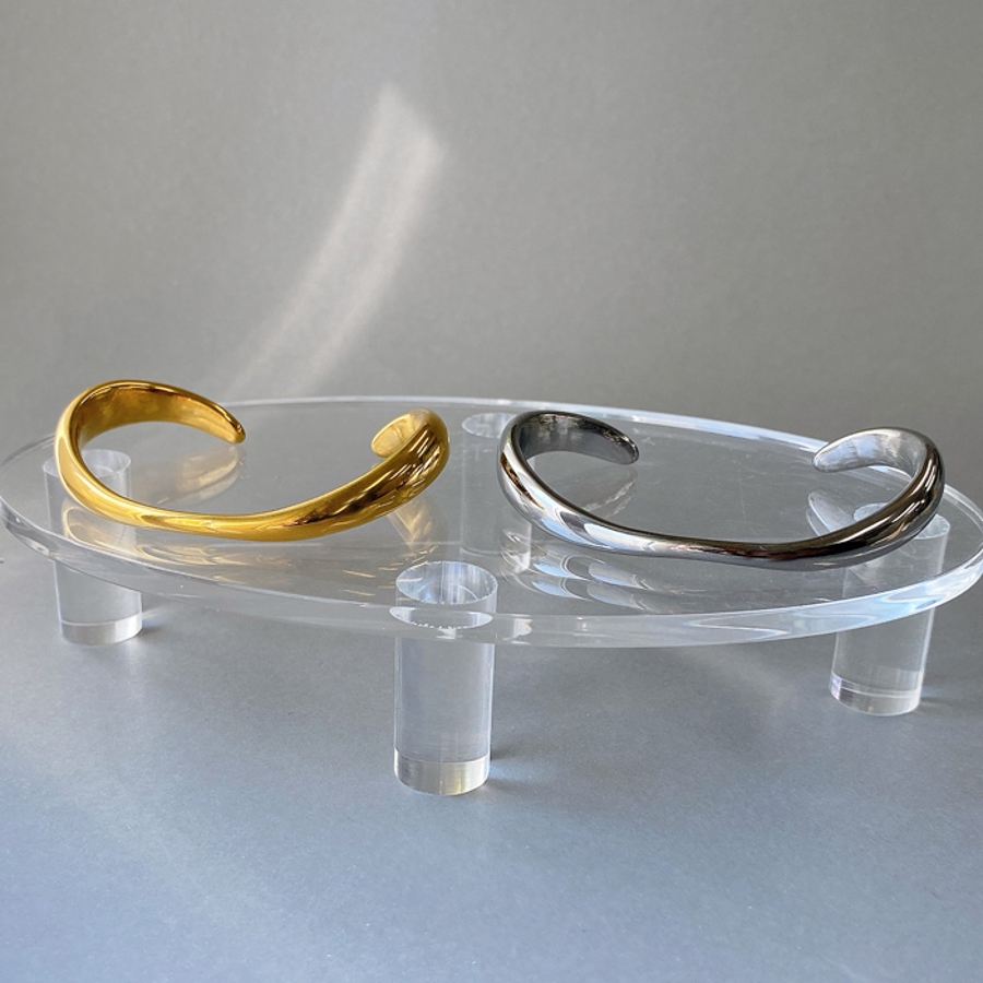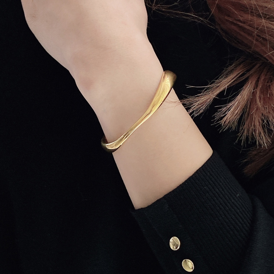柔らかいカーブラインがポイントのステンレス製ウェーブメタルバングル。