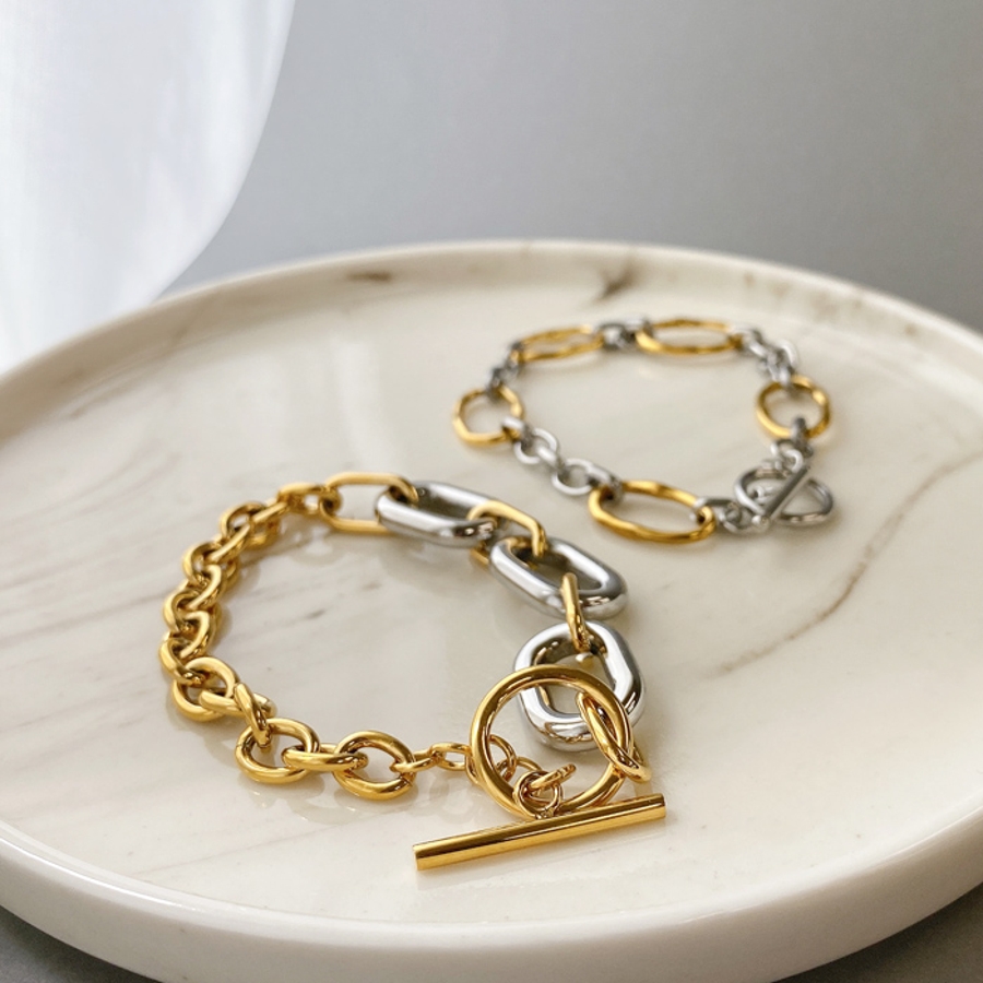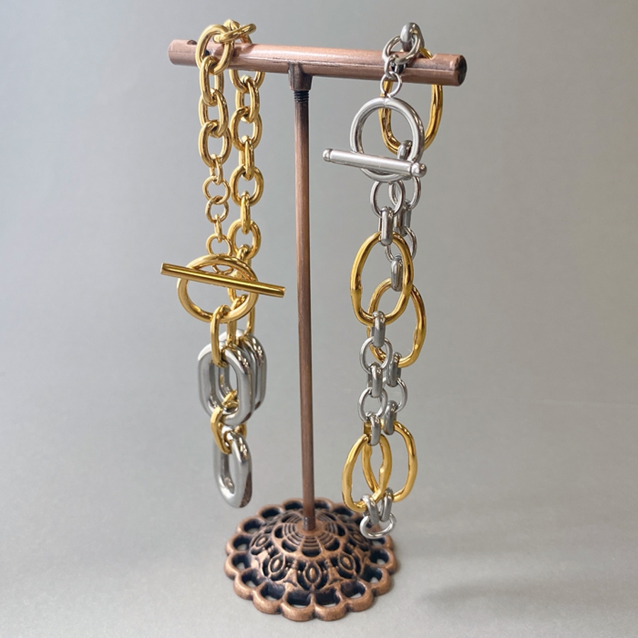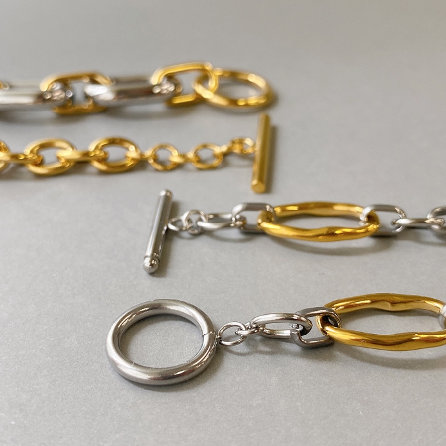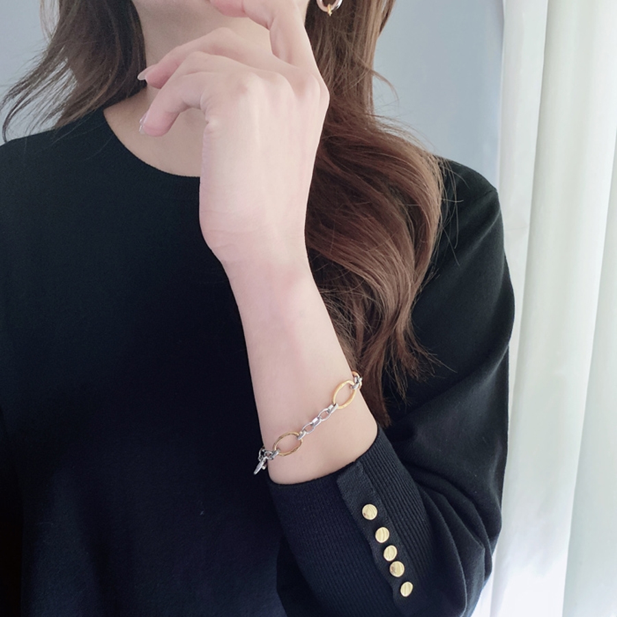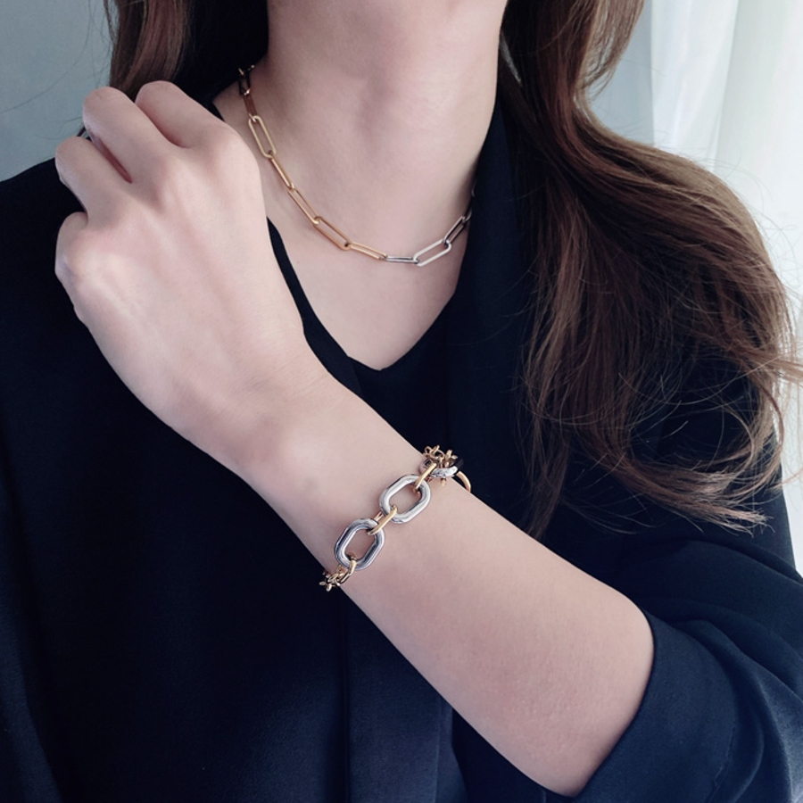 個性とトレンド感をプラスした、バイカラーデザインチェーンブレスレット。