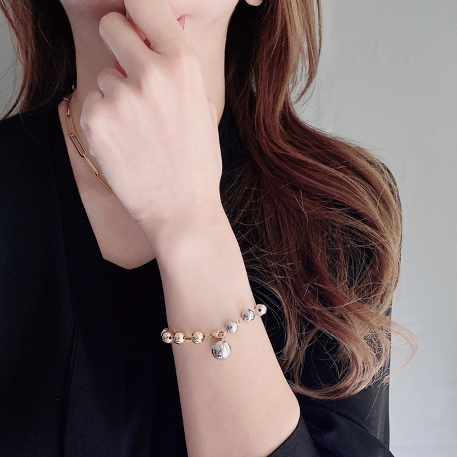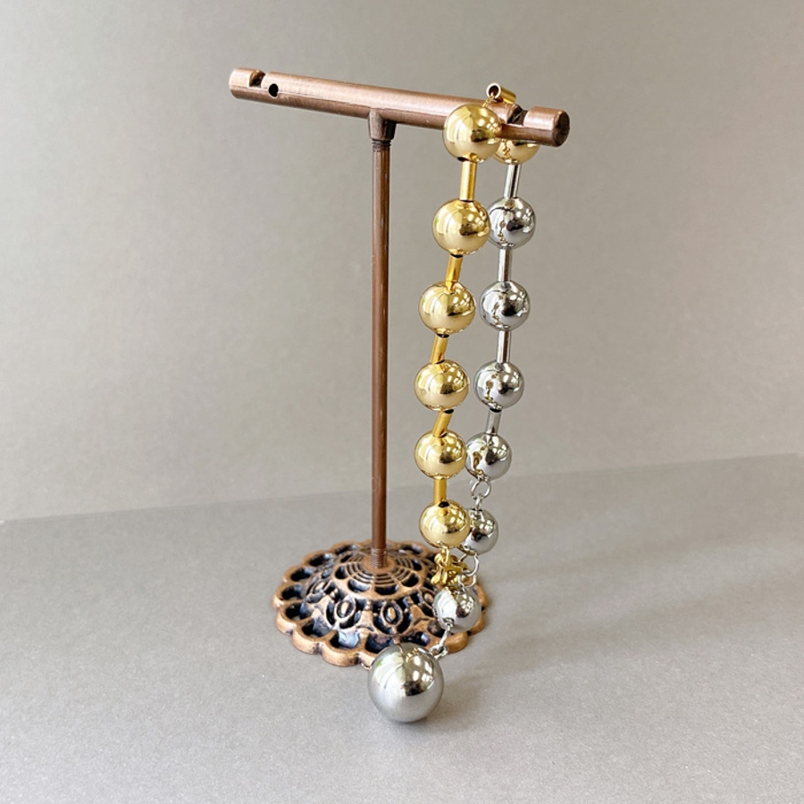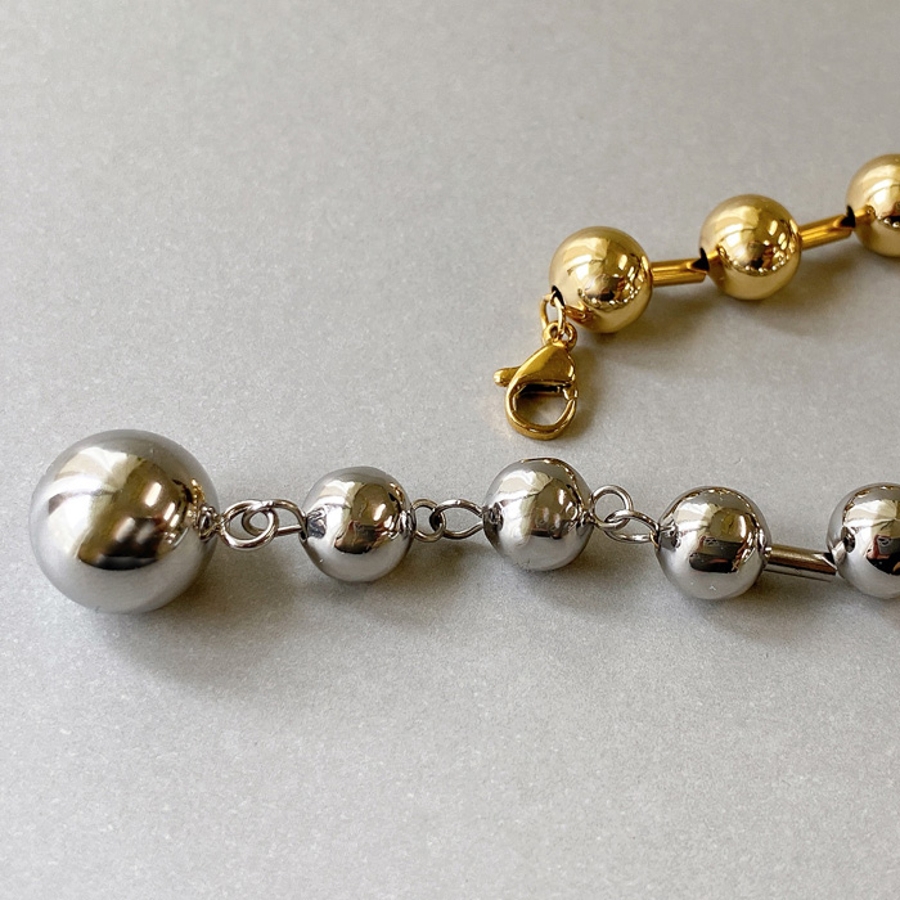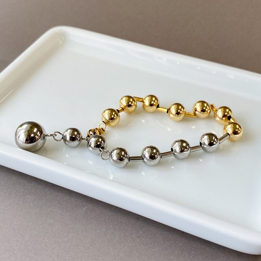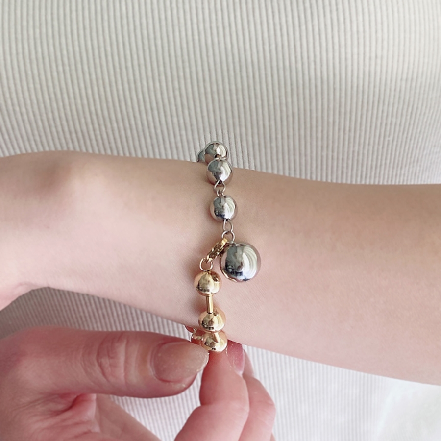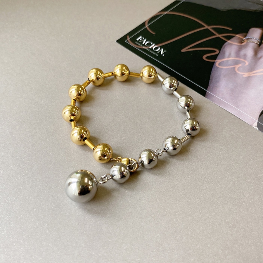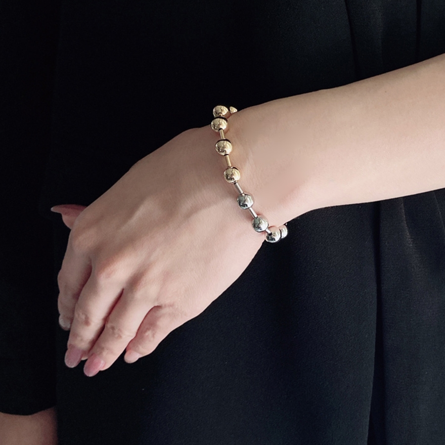 バイカラーグラデーションボールチェーンステンレスブレスレット レディース