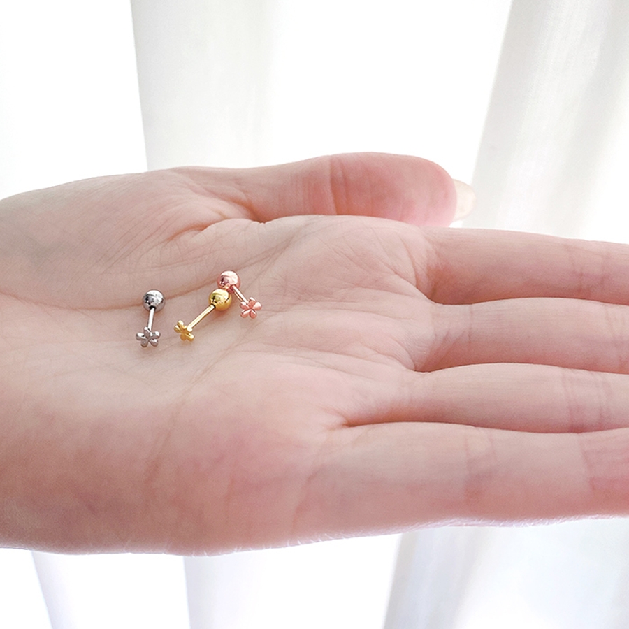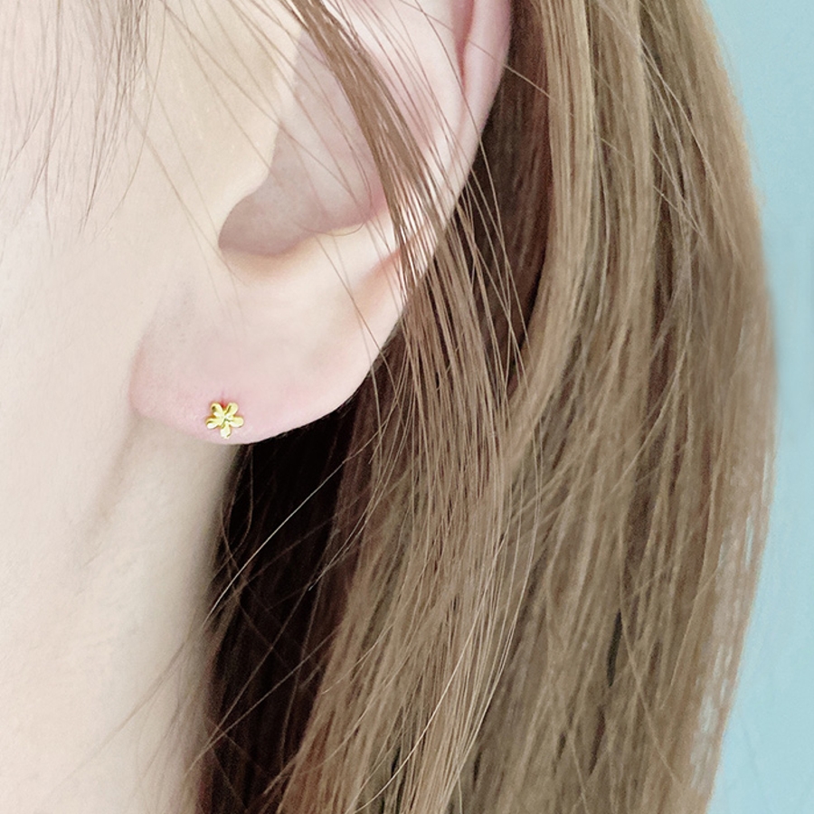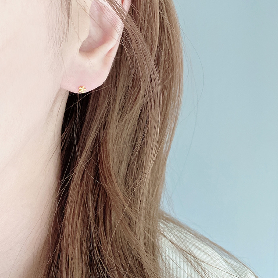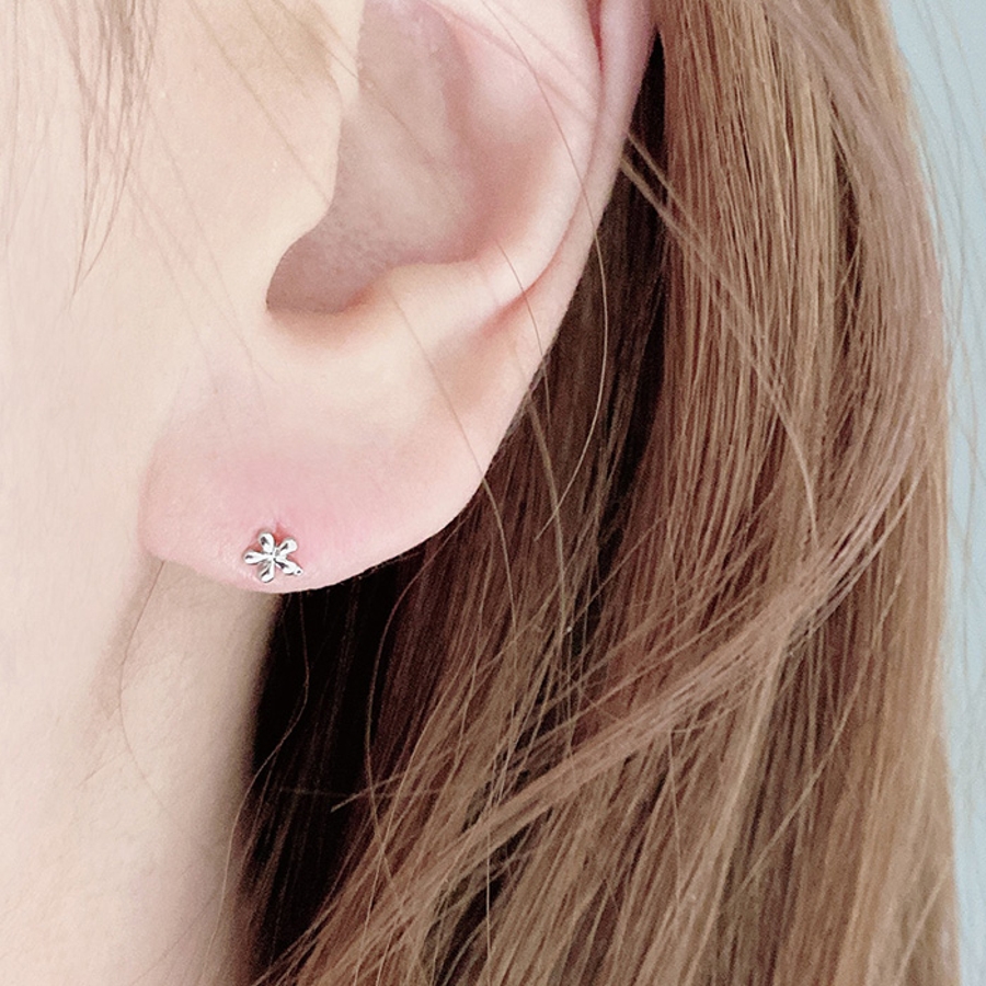 小さくて控えめで可愛い、ステンレス素材のマイクロミニフラワーピアス。