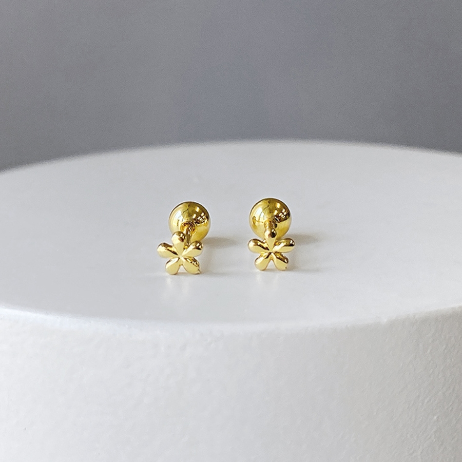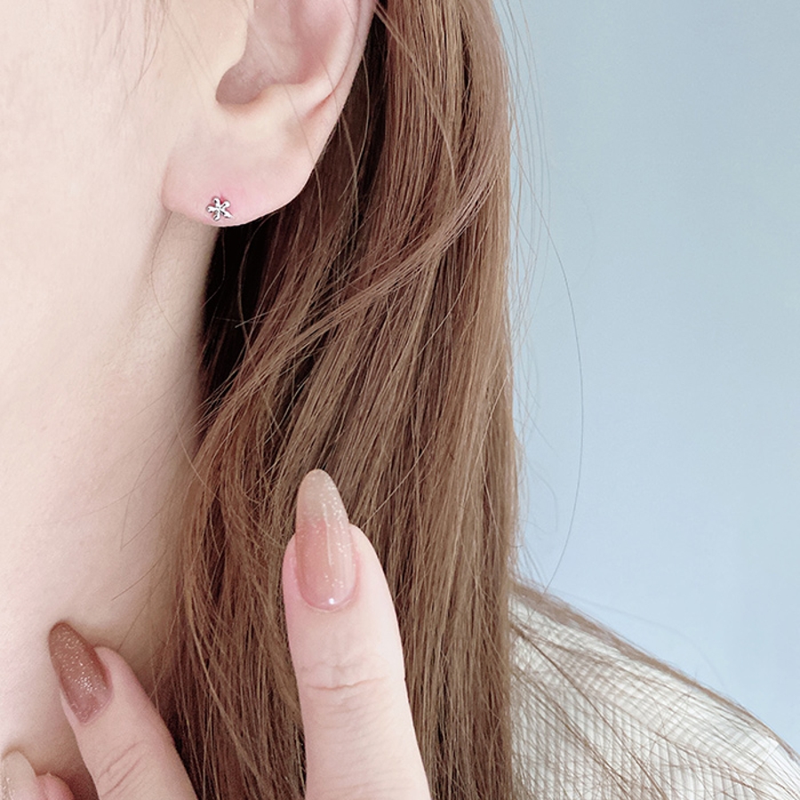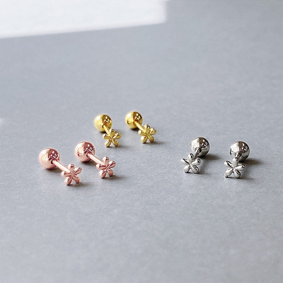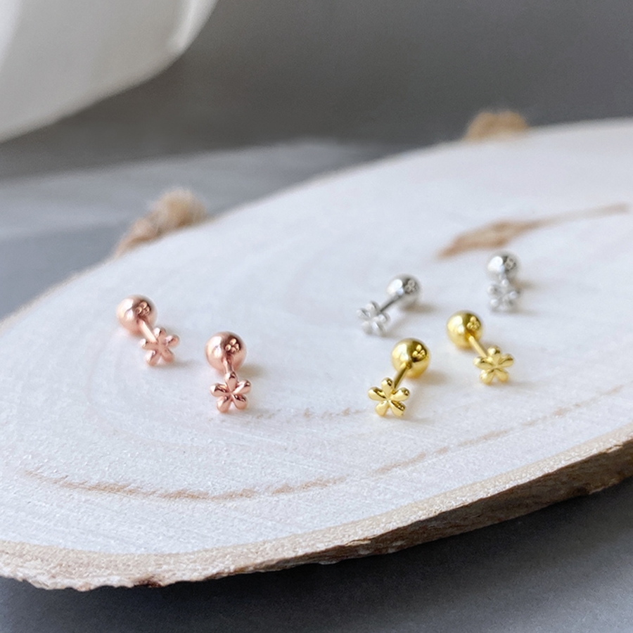 小さくて控えめで可愛い、ステンレス素材のマイクロミニフラワーピアス。