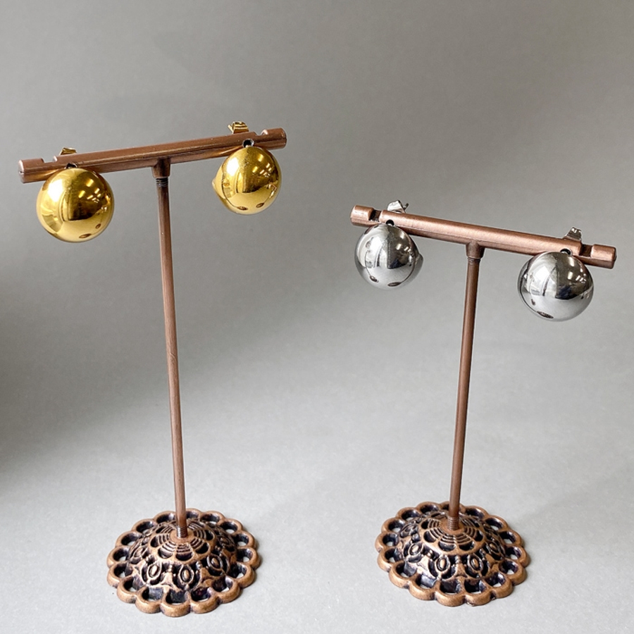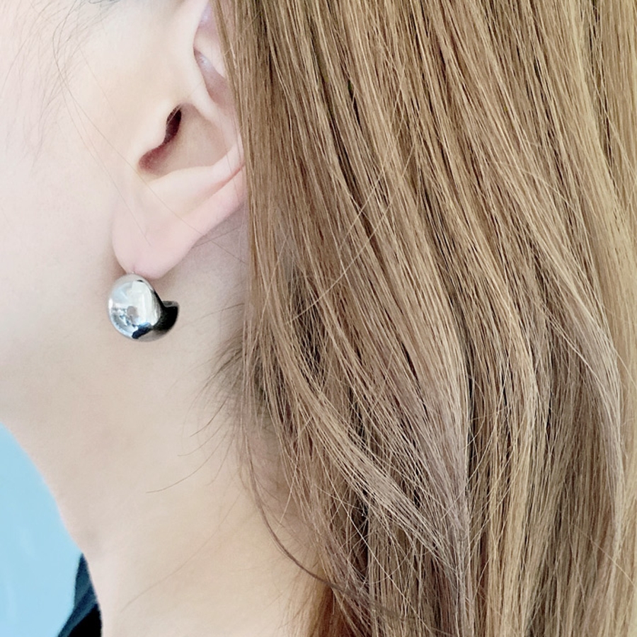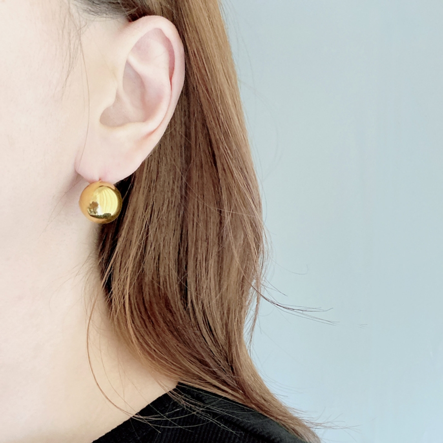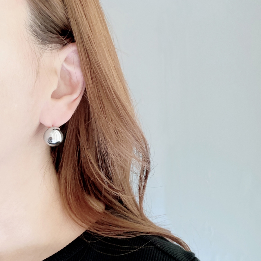 大振りでコロンとした球体のシルエットのボール型ステンレスピアス。