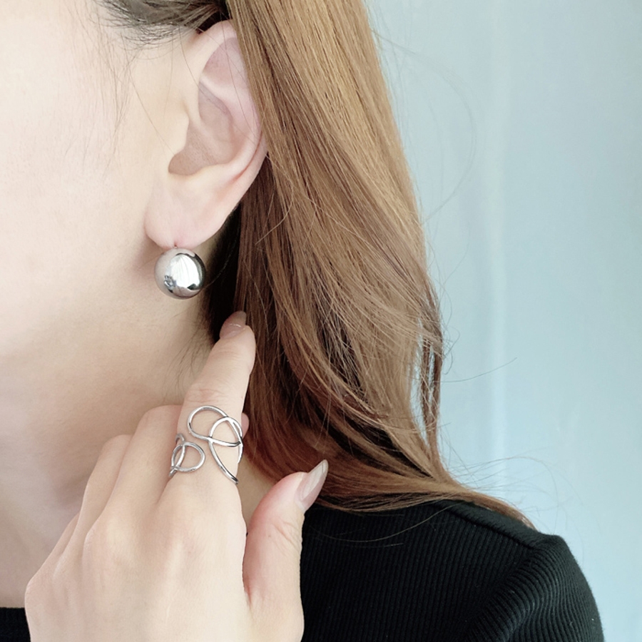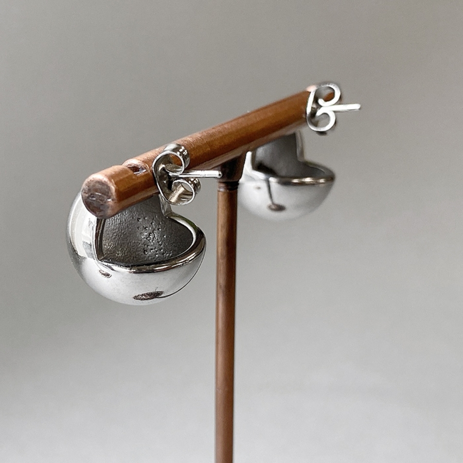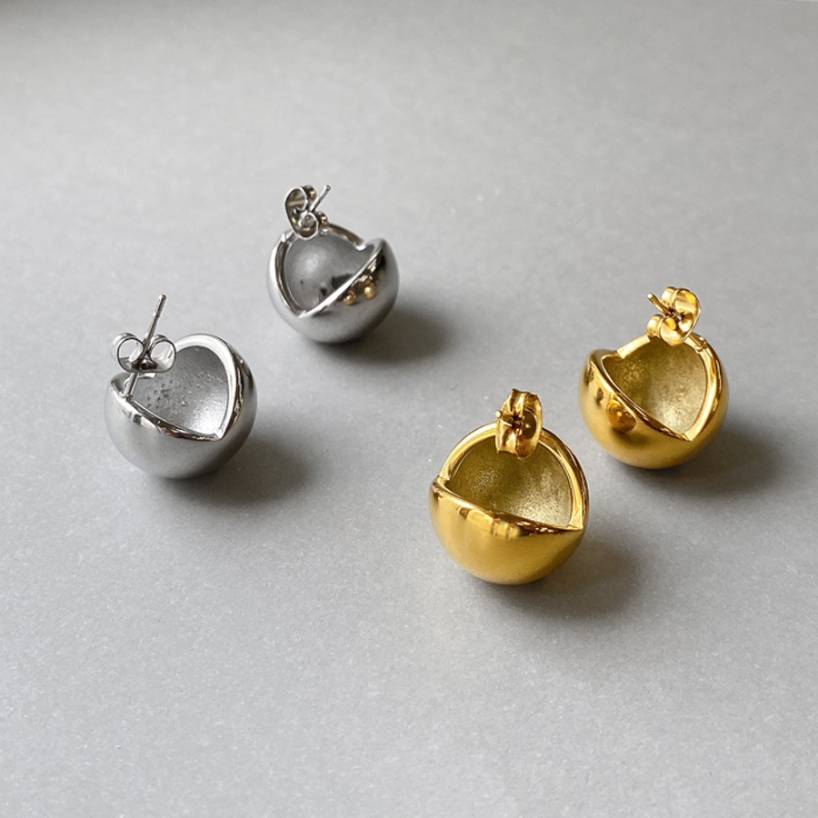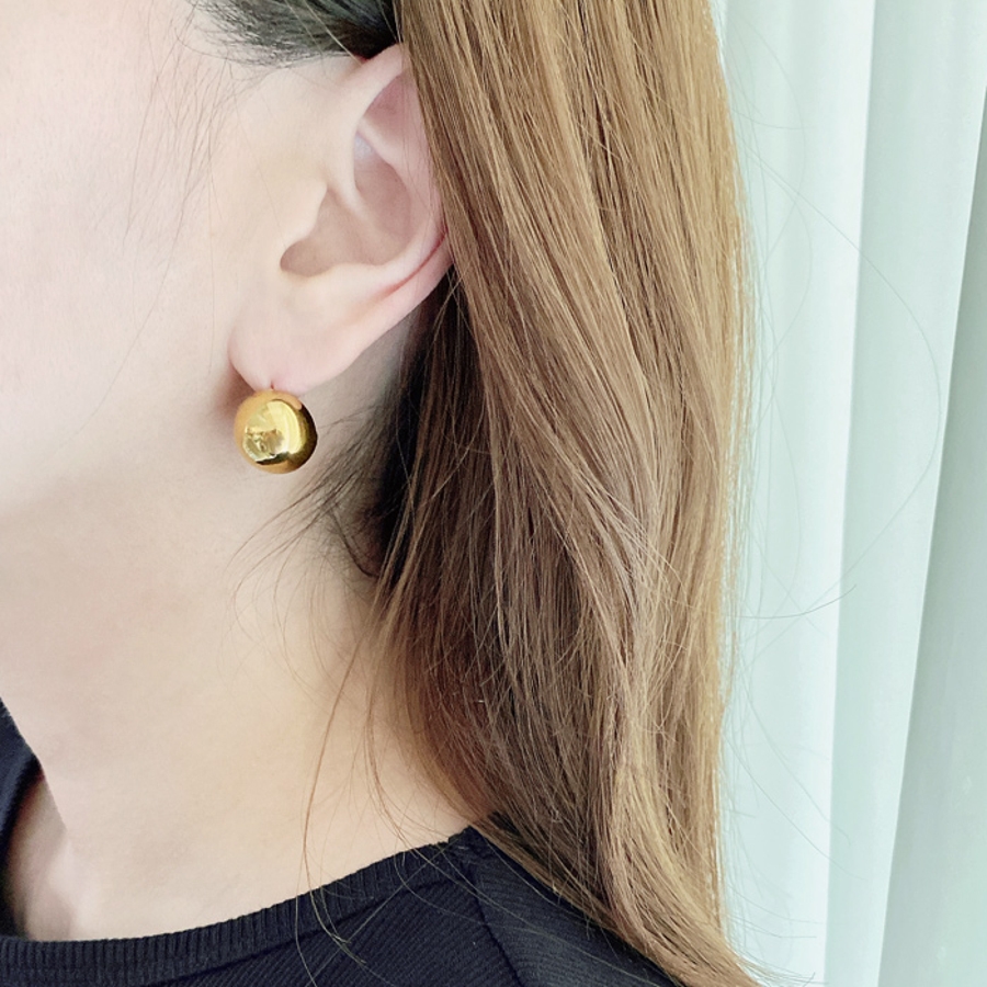 大振りでコロンとした球体のシルエットのボール型ステンレスピアス。