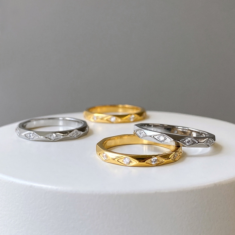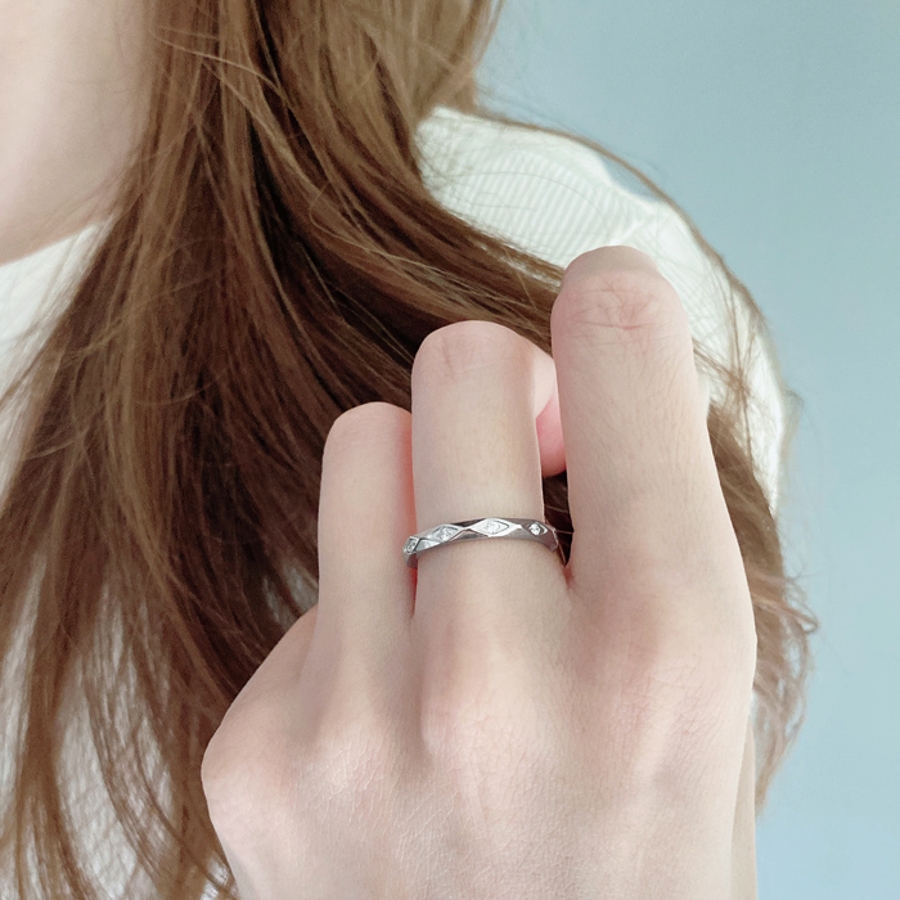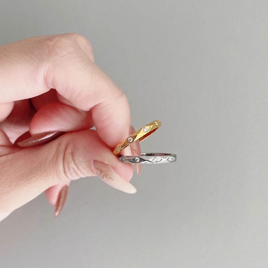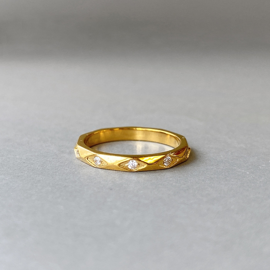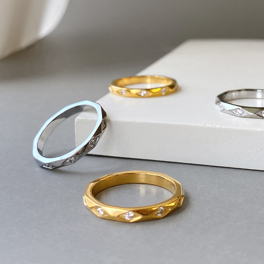 洗練されたシャープな輝きを放つ、CZ付ダイヤカットステンレスリング。