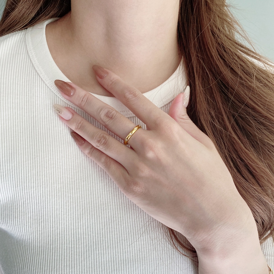 汎用性の高いシンプルなデザインなので、どんなコーデにも合わせやすいリングです。
