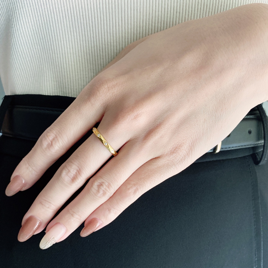 一周にセットされたジルコニアストーンの煌めきが、手元に華やかさを添えてくれます。