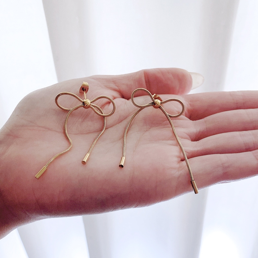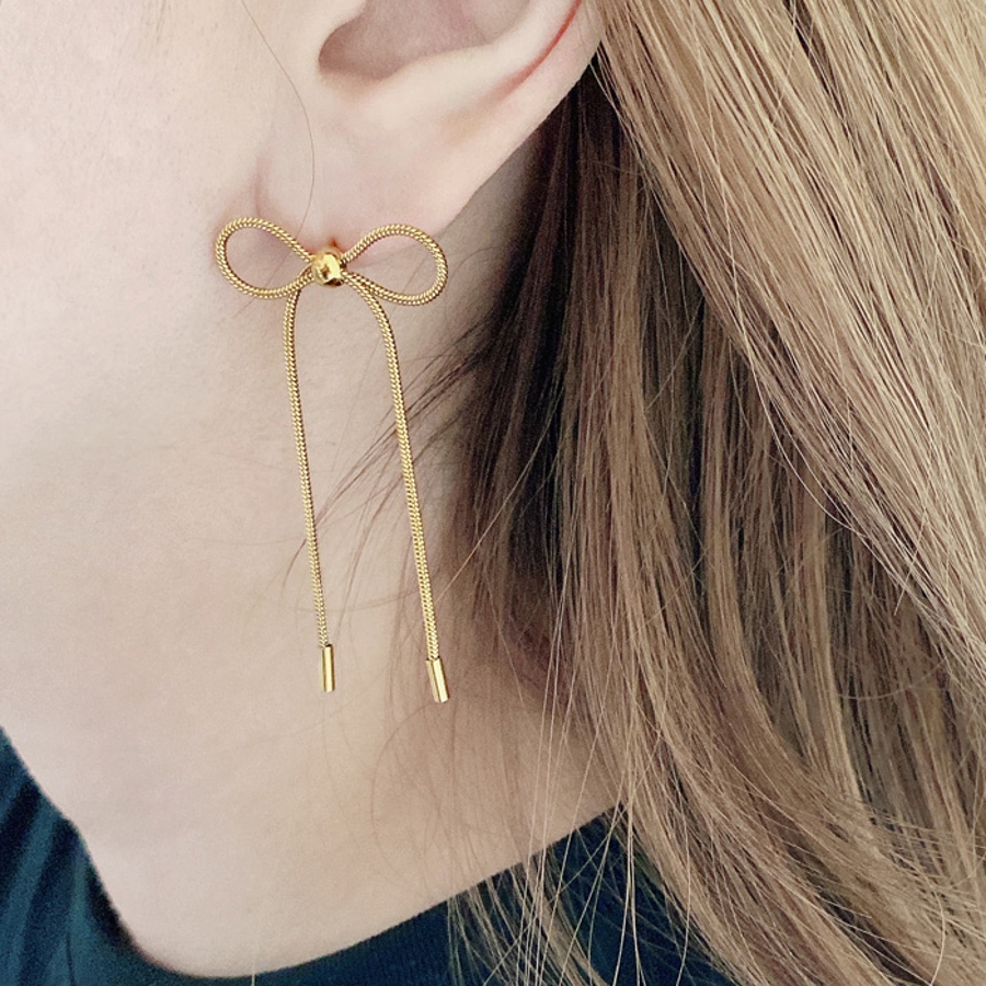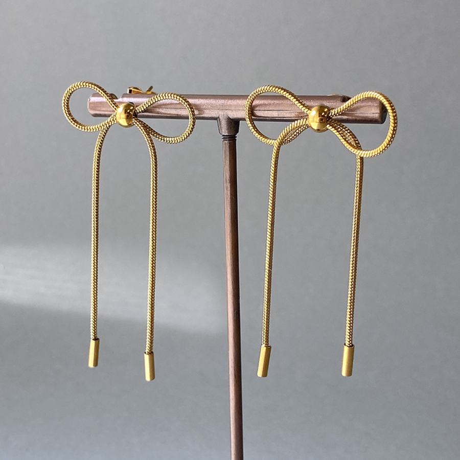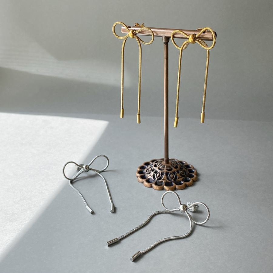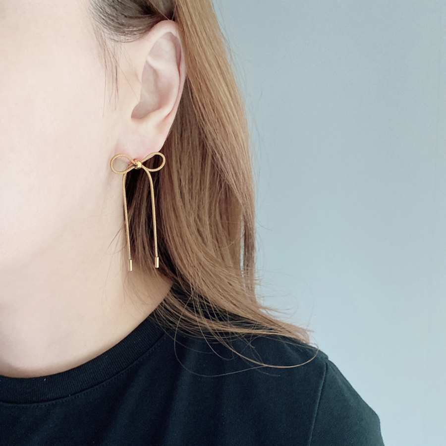 【シルバー】リボンチェーンステンレスピアス 蝶々 りぼん