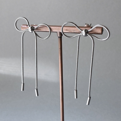 【ゴールド】リボンチェーンステンレスピアス 蝶々 りぼん