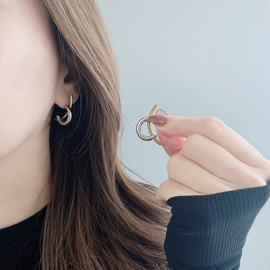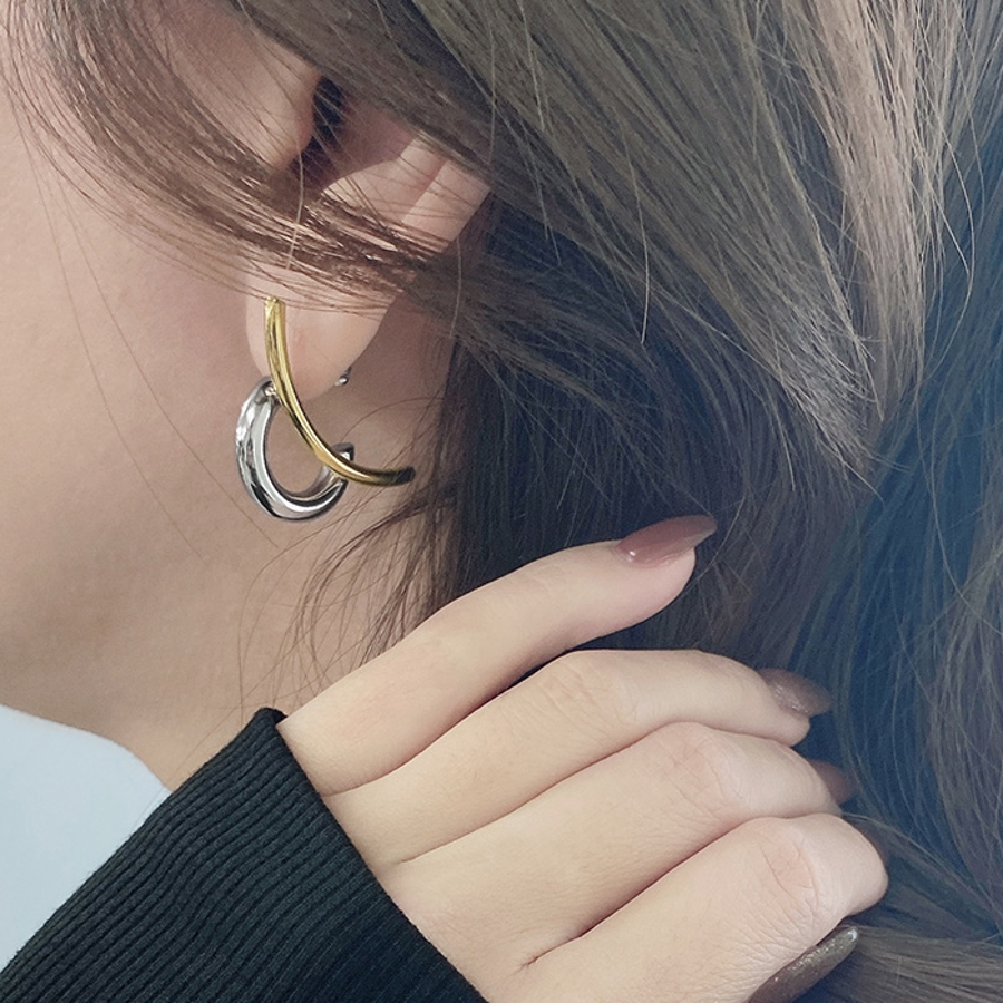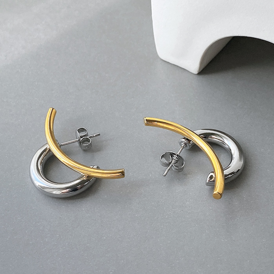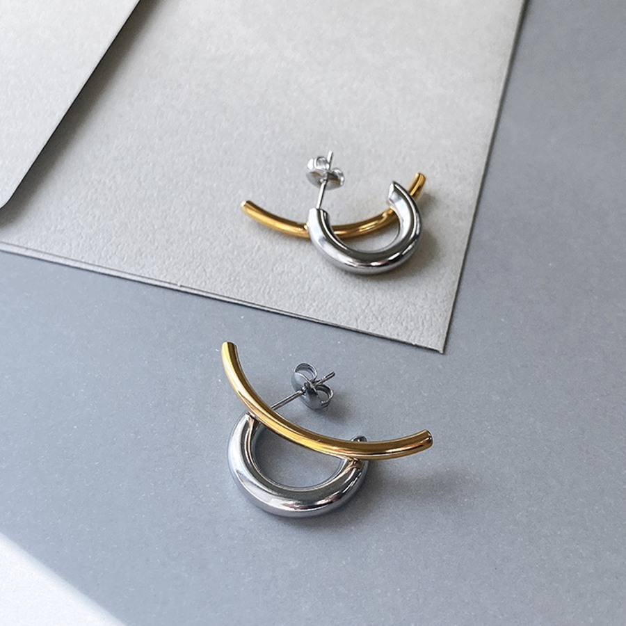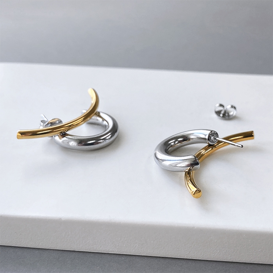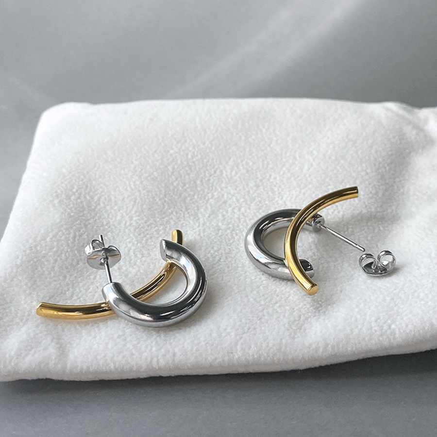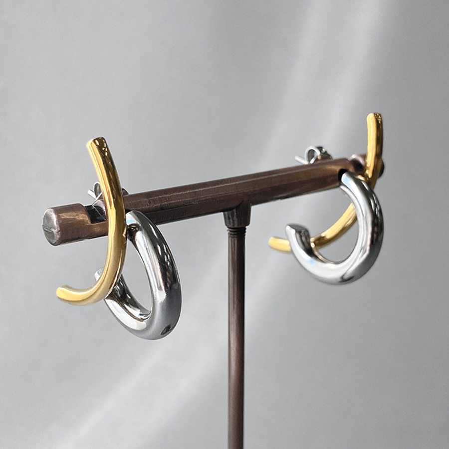 バイカラーカーブデザインステンレスフープピアス アレルギー対応 つけっぱなし
