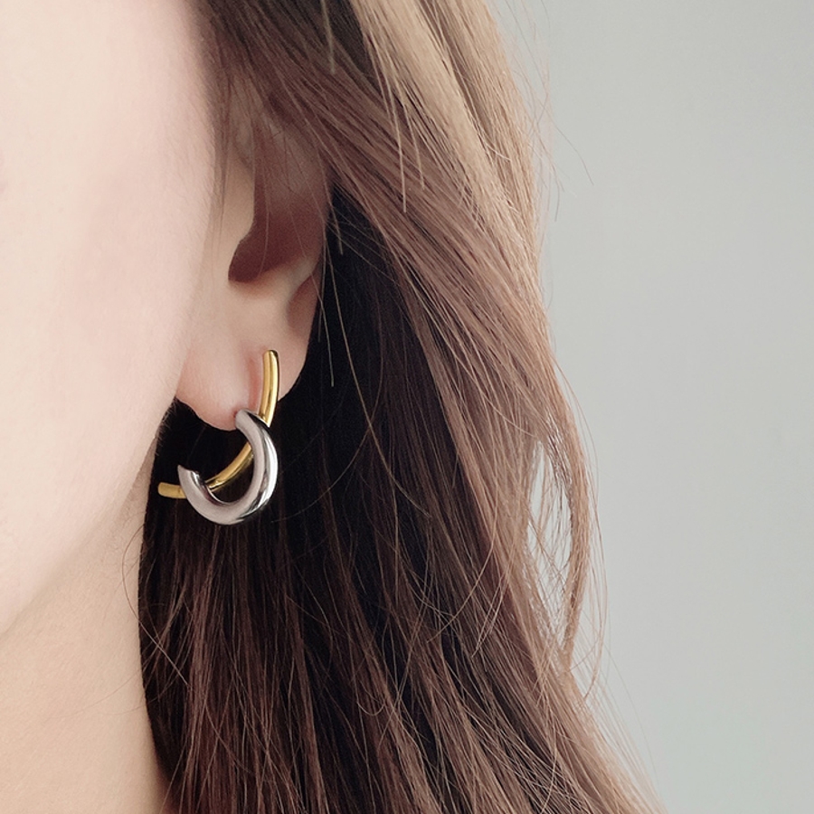 思わず目を奪われる2つのピアスを重ね着けしたようなシルエットが、いつものコーディネートを格上げしてくれます。
