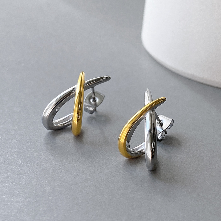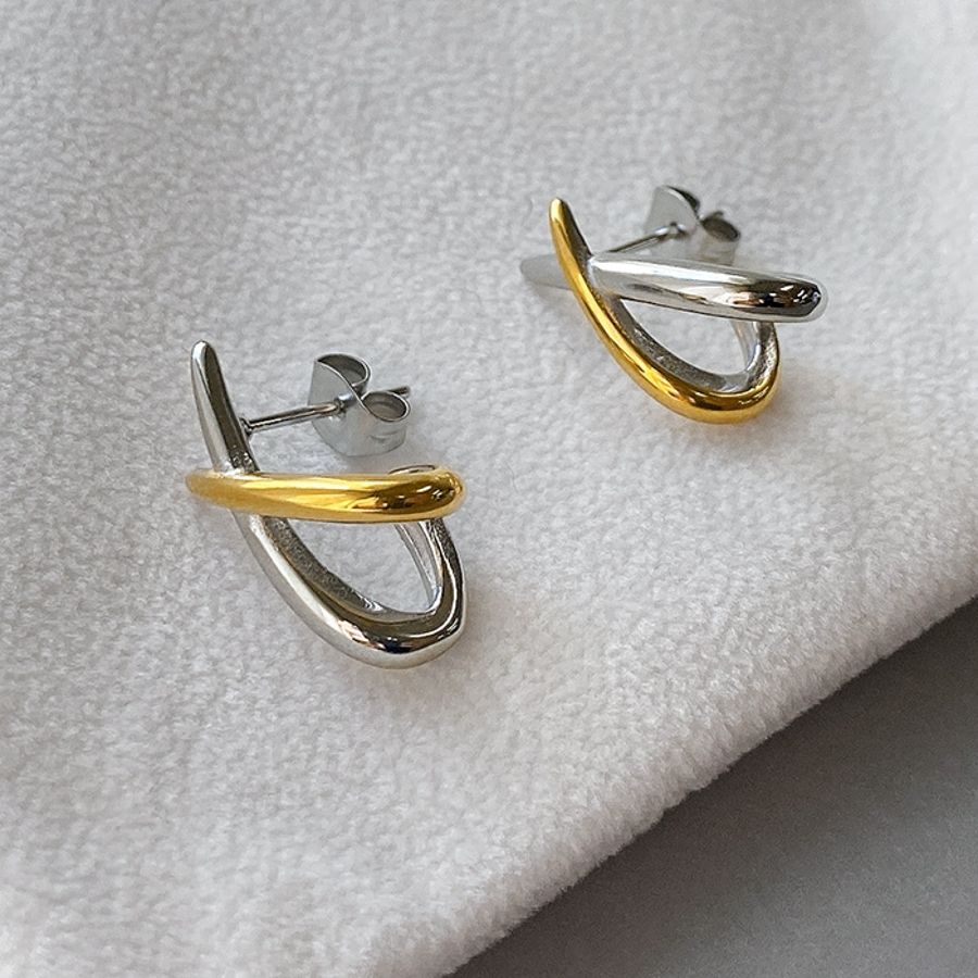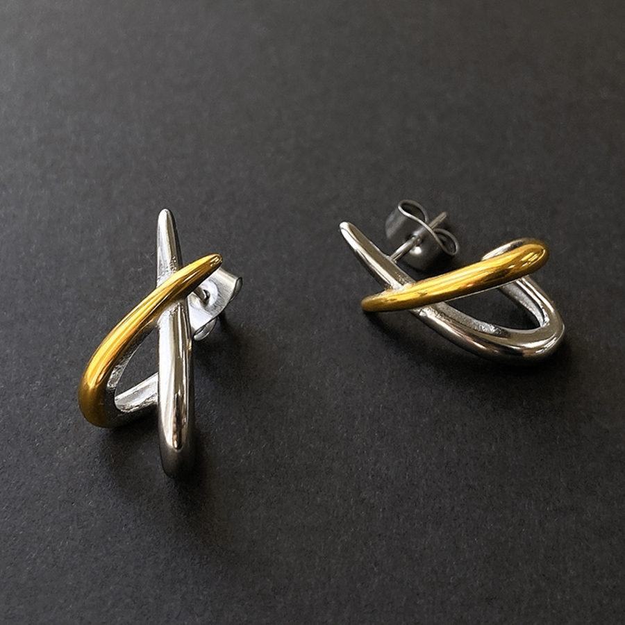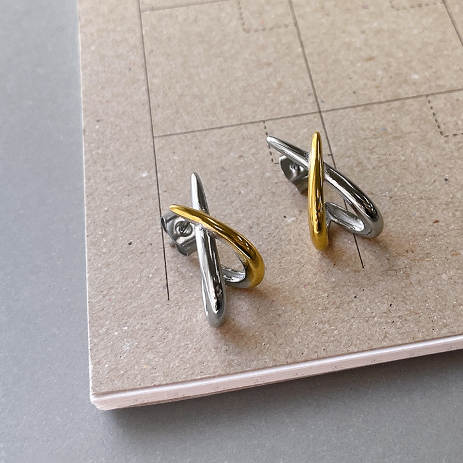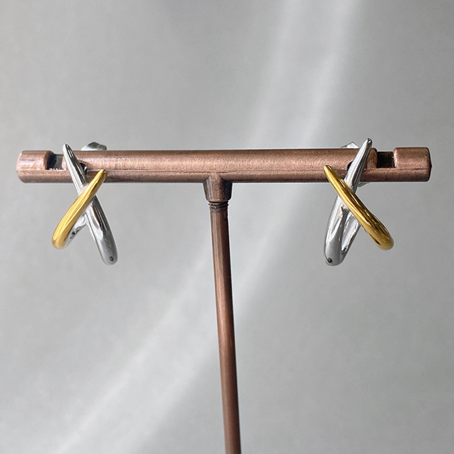 程よいアクセントになるバイカラー仕上げのデザインクロスピアス。