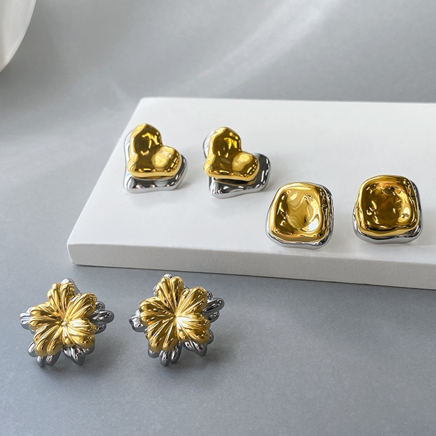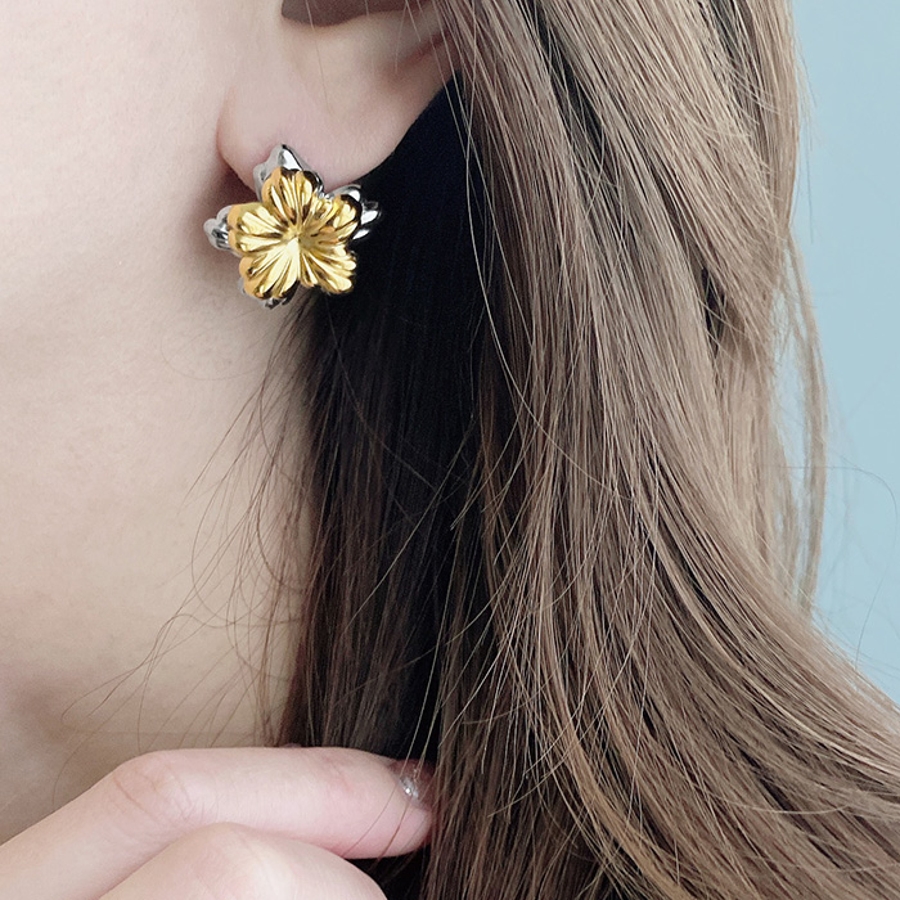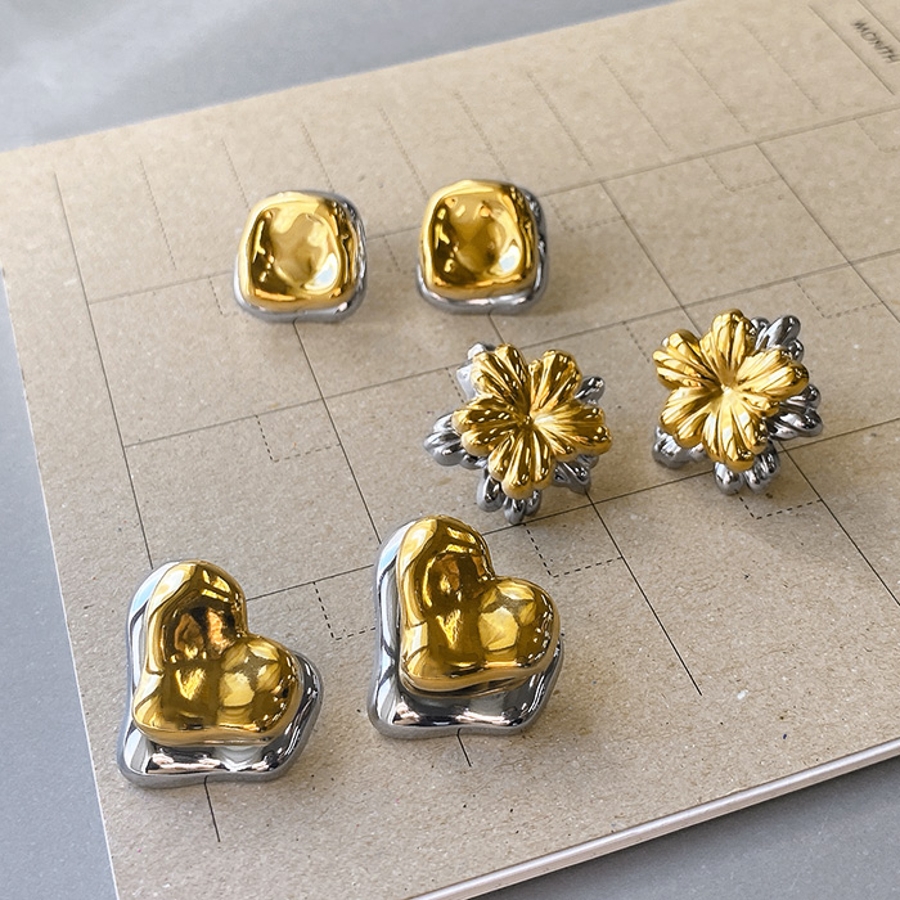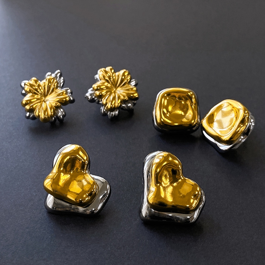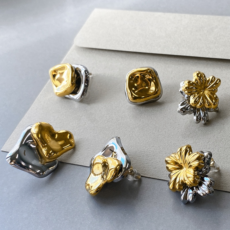 バイカラー大ぶりデザインステンレスピアス 2WAY アレルギー対応