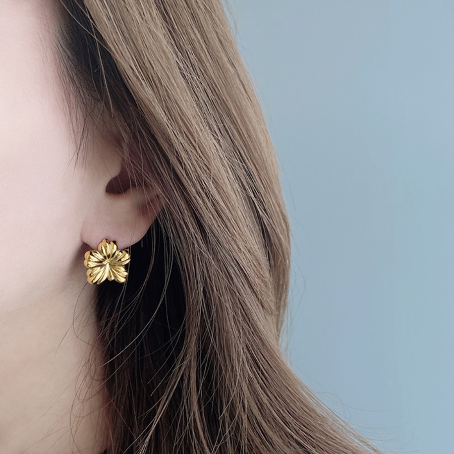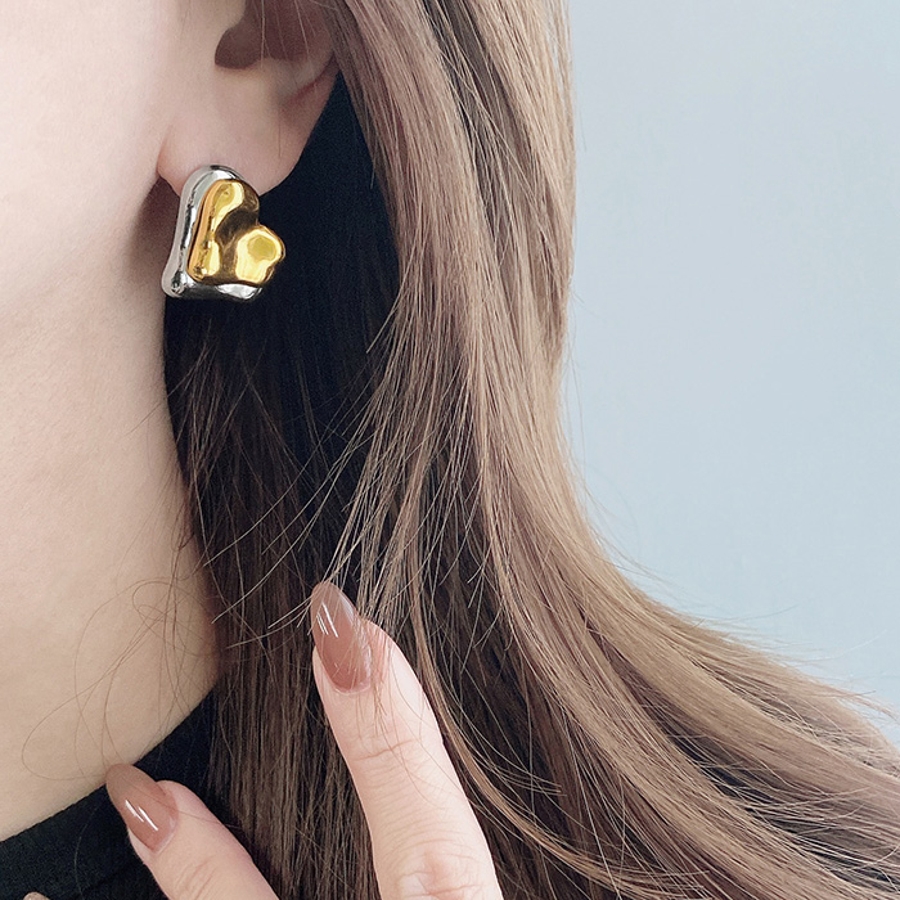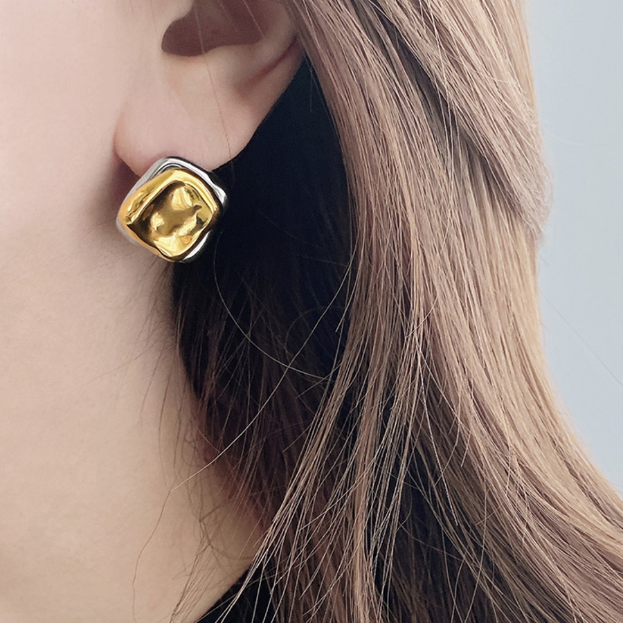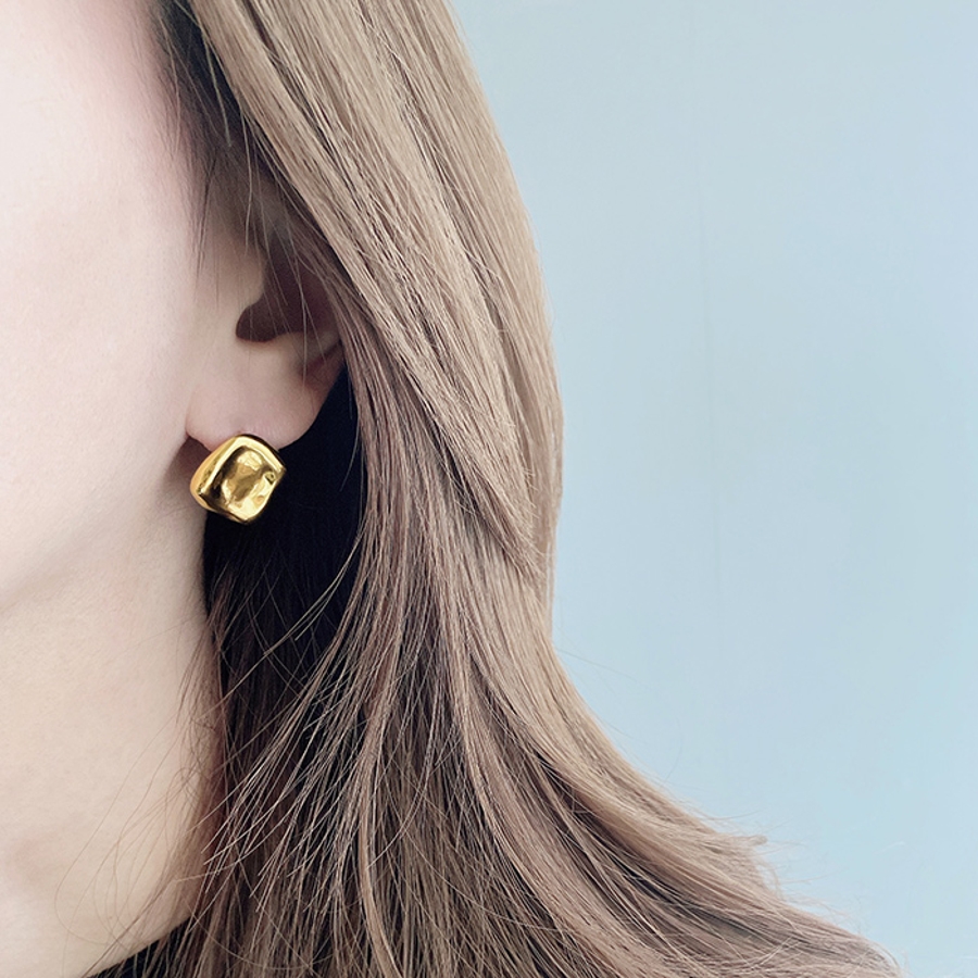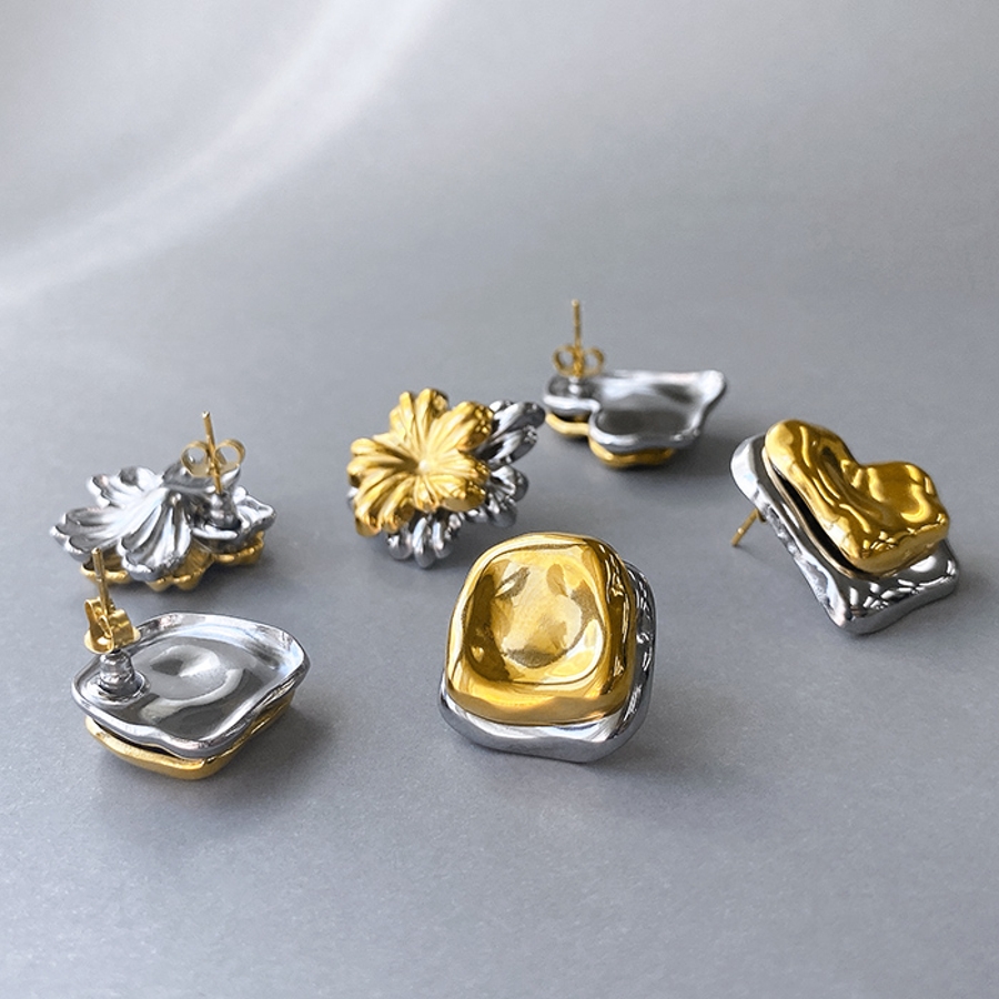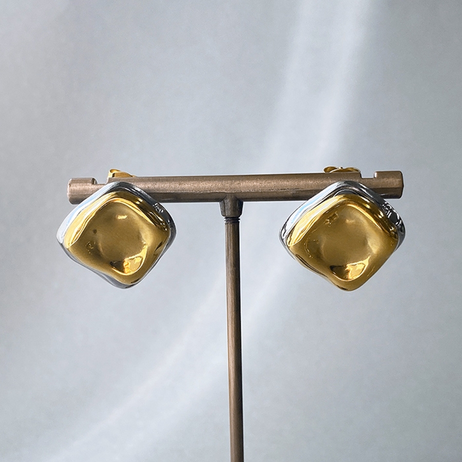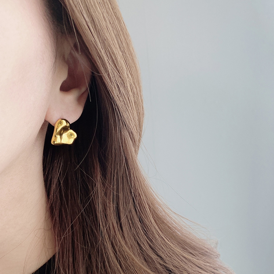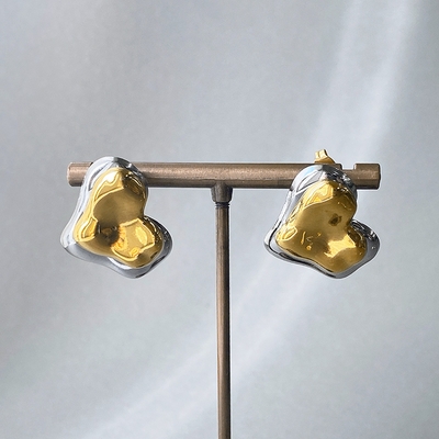 歪み加工のやわらかなフォルムが魅力のステンレス製デザインピアス。