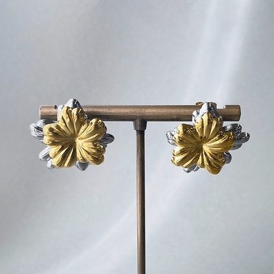 パッと目を引く大振りサイズは、シルバーパーツを外してゴールドモチーフのみでも楽しめる2WAY仕様。