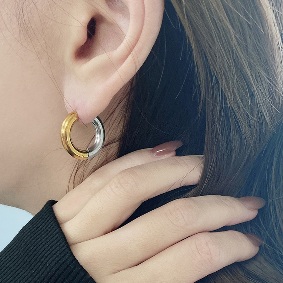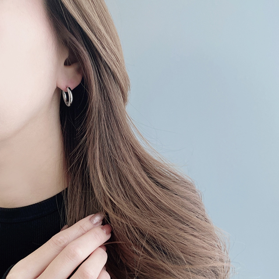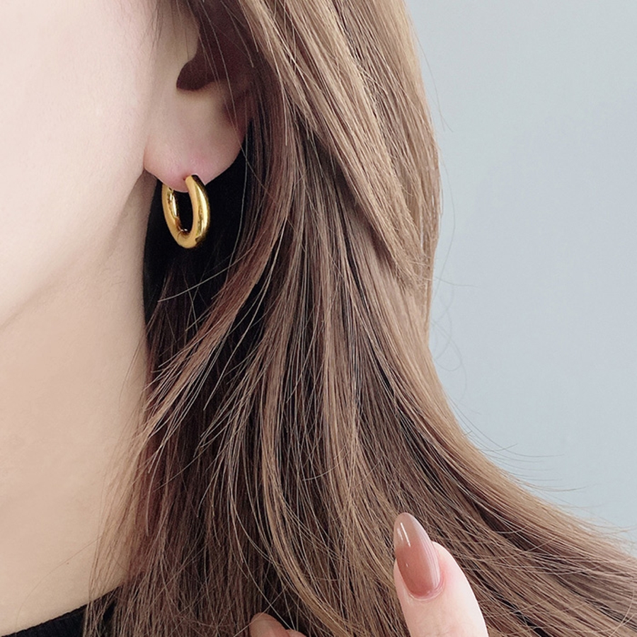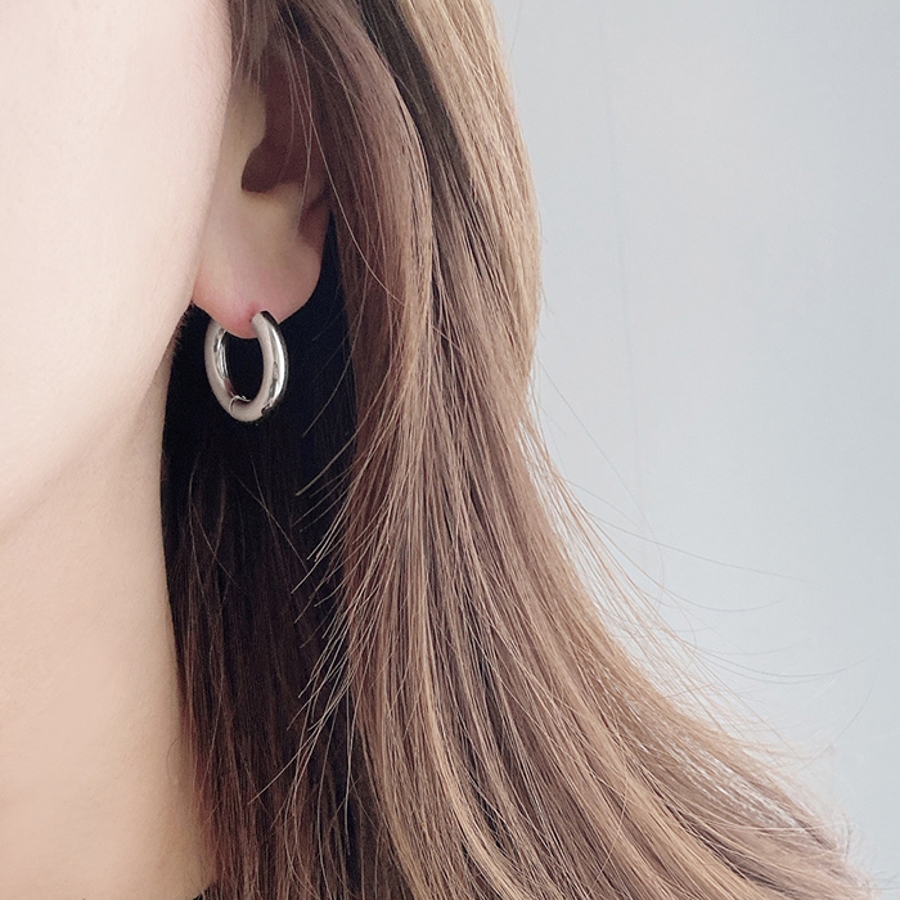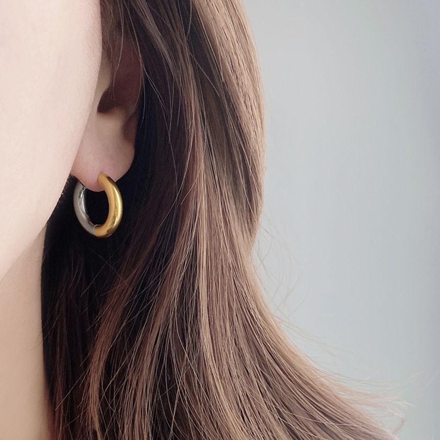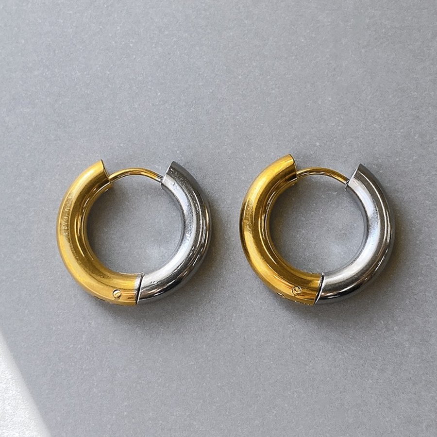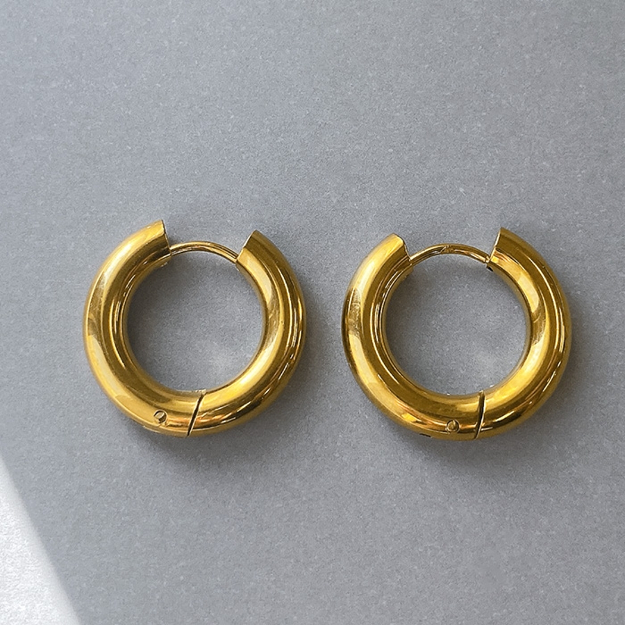 すっきりとしたシンプルなフォルムの開閉式チャンキーフープピアス。