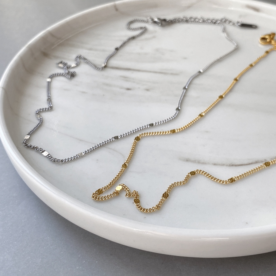 華奢で首元に馴染むスリムドットチェーンネックレス。