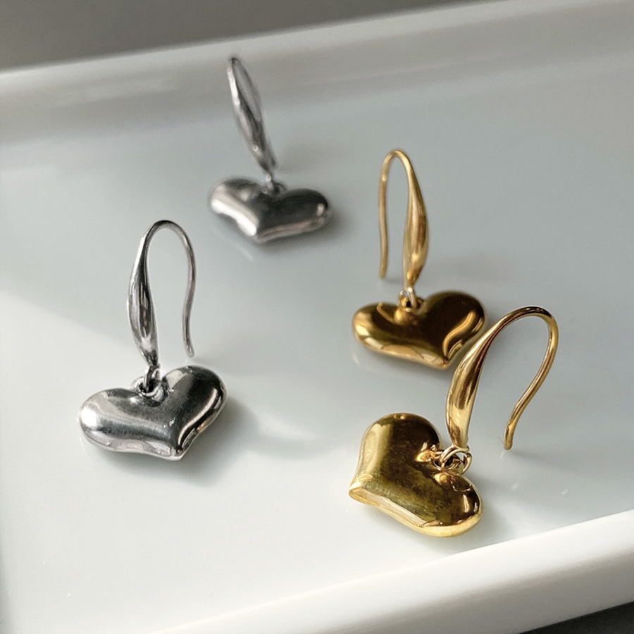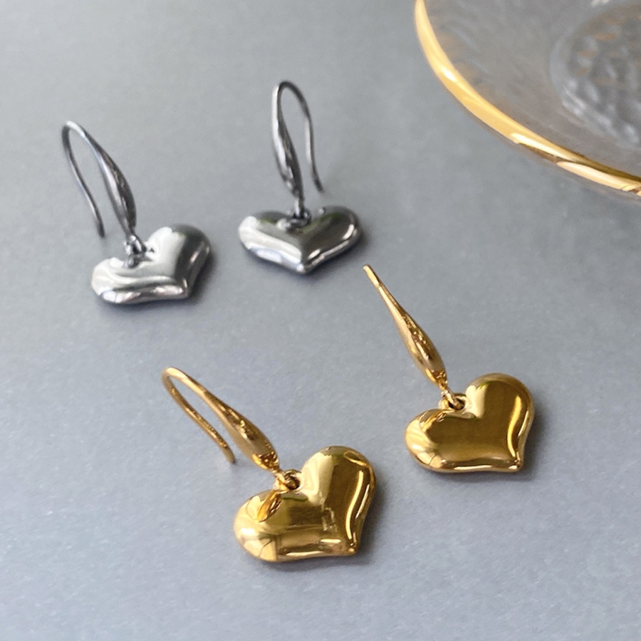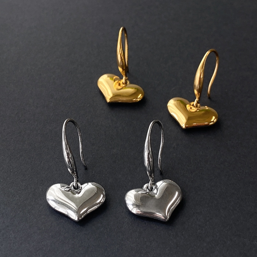 丸みのあるふっくらフォルムのプランプハートフックピアス。