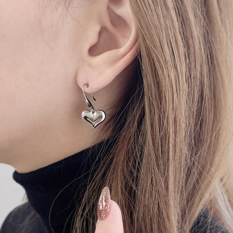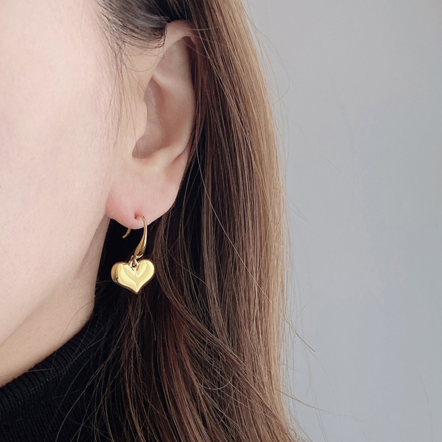 動くたびに耳元で揺れる可愛らしいハートが、顏周りにフェミニンな印象を添えてくれます。