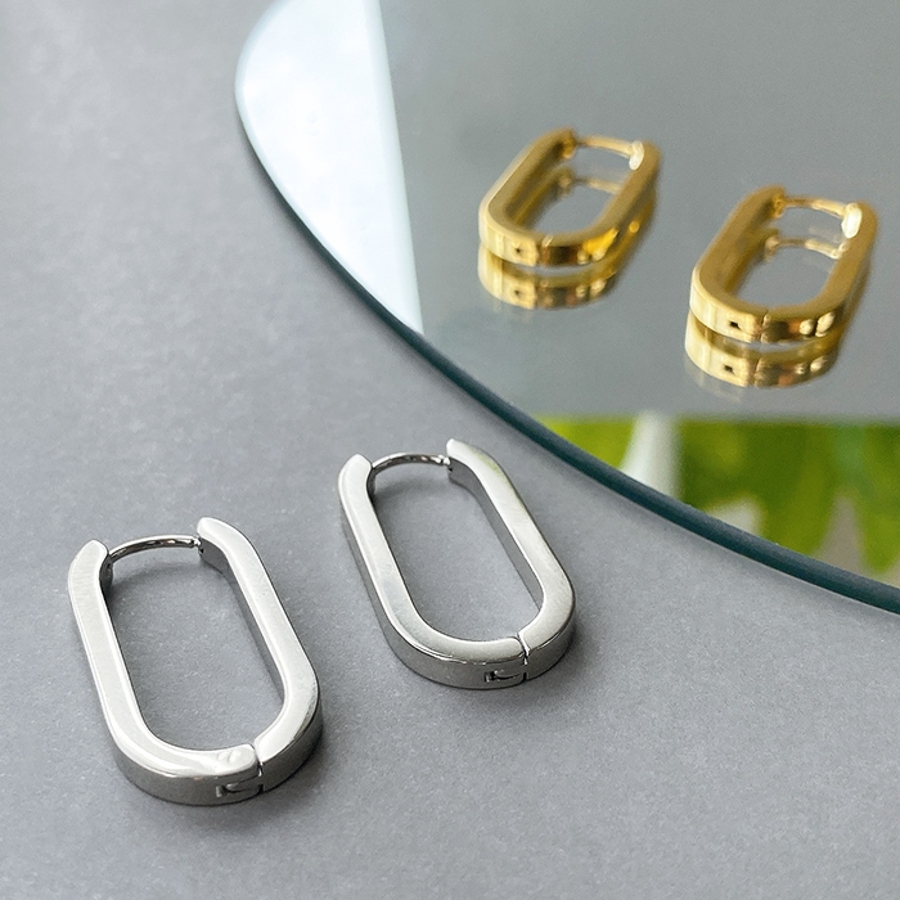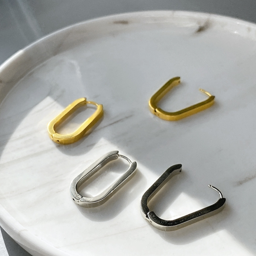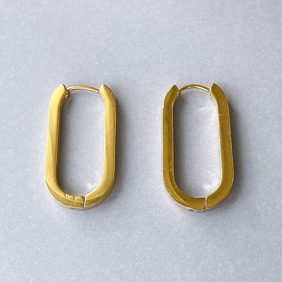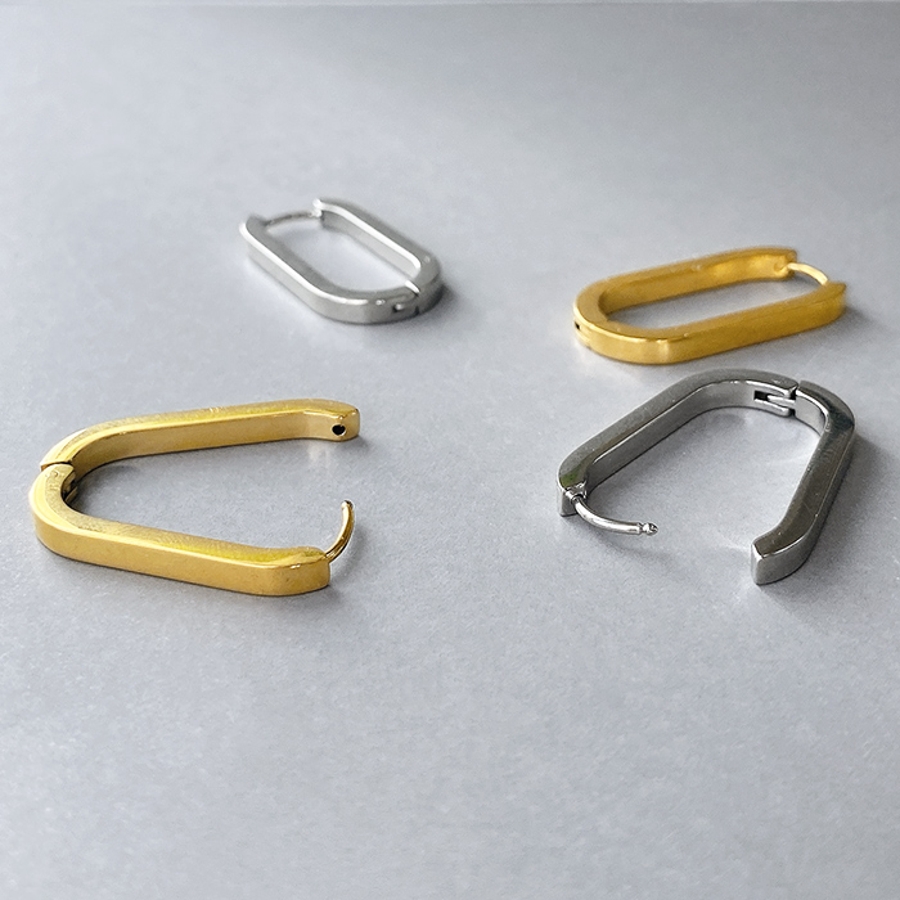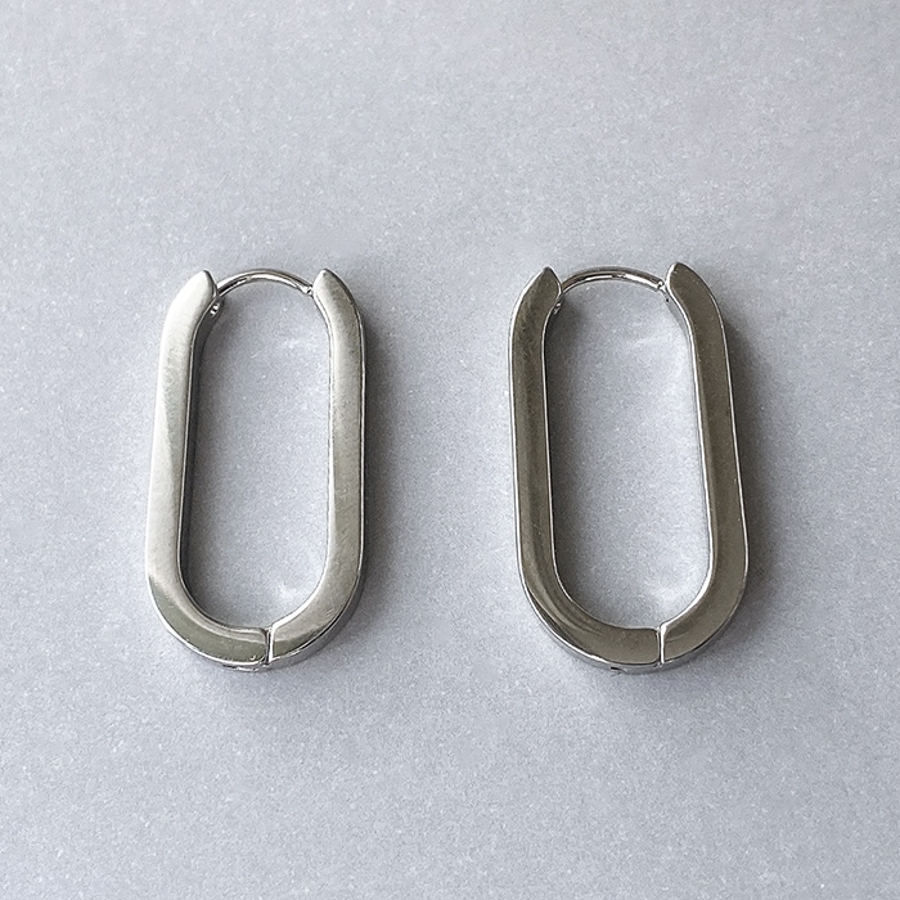すっきりとしたシンプルなフォルムの開閉式オーバルフープピアス。