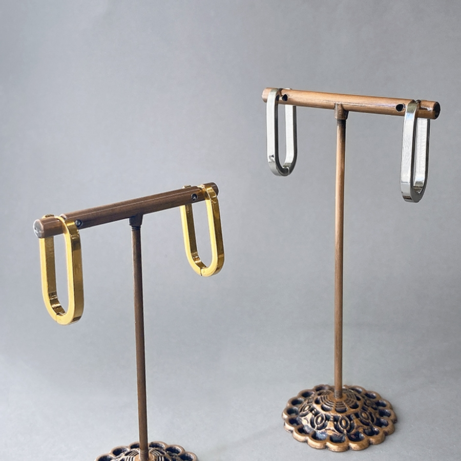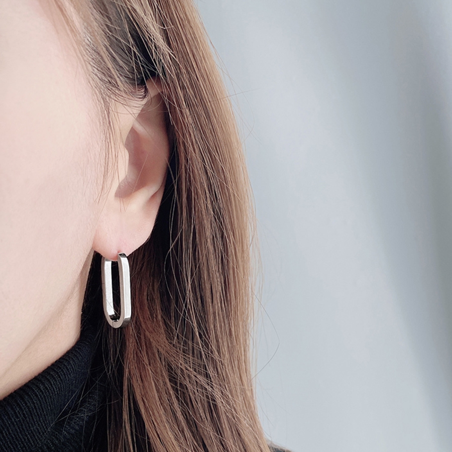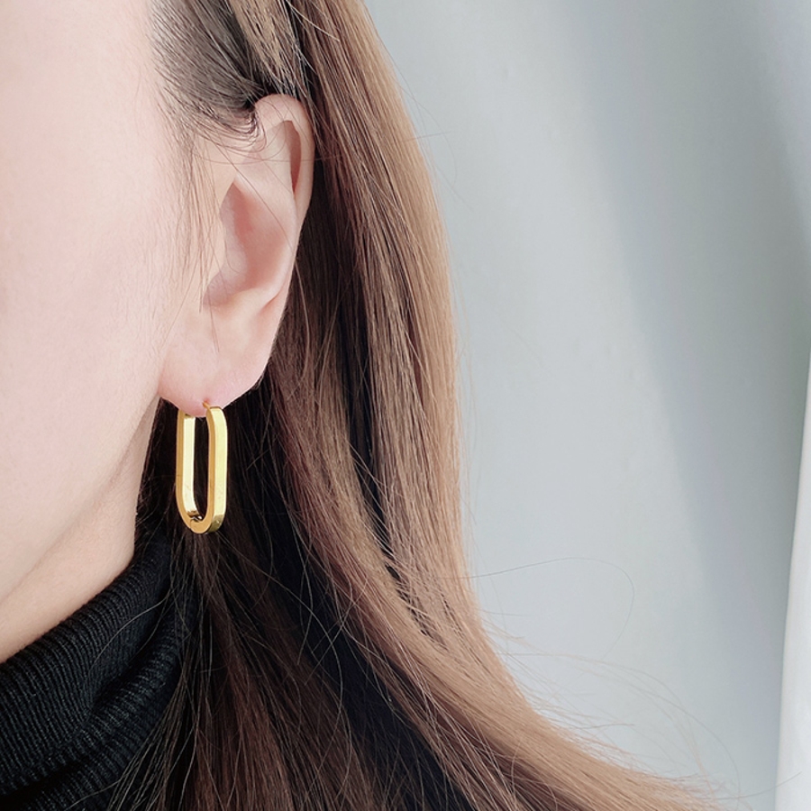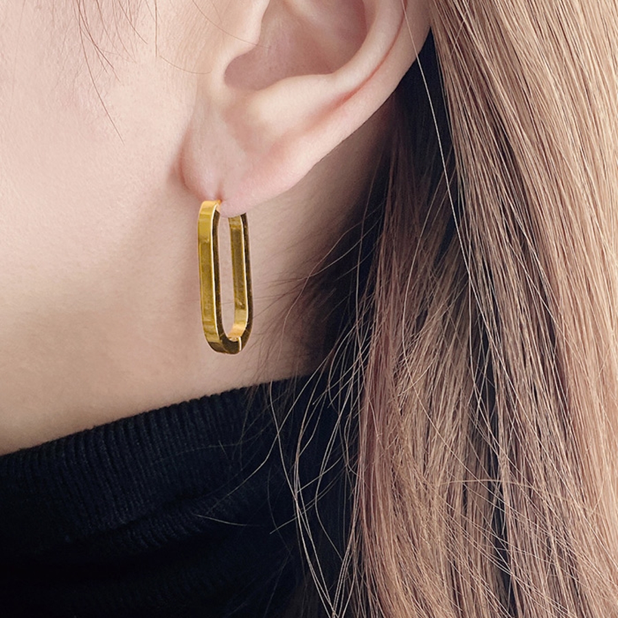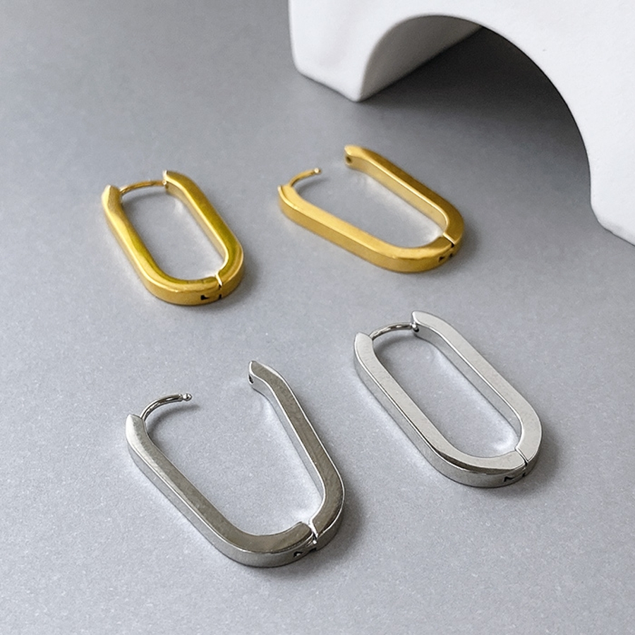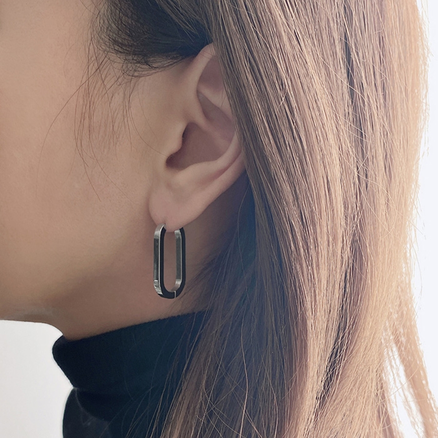 すっきりとしたシンプルなフォルムの開閉式オーバルフープピアス。