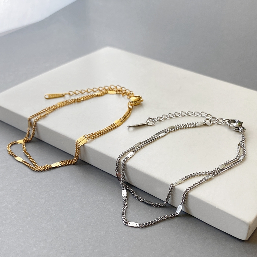 フラットドット2連チェーンステンレスブレスレット 金属アレルギー アレルギー対応