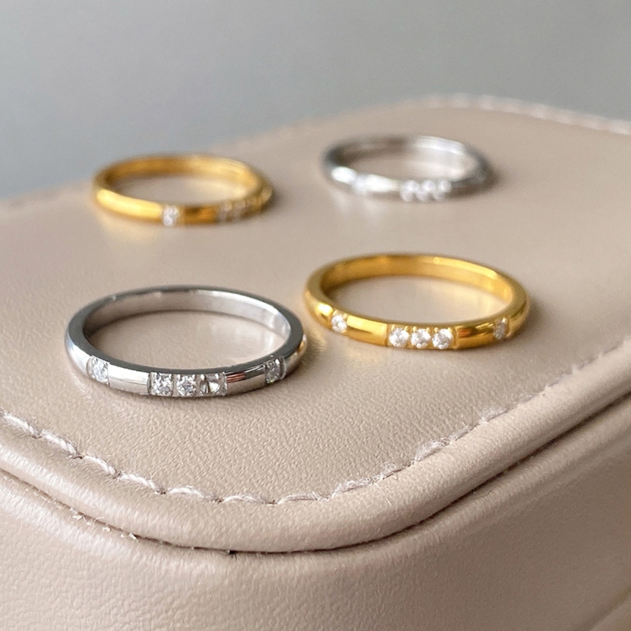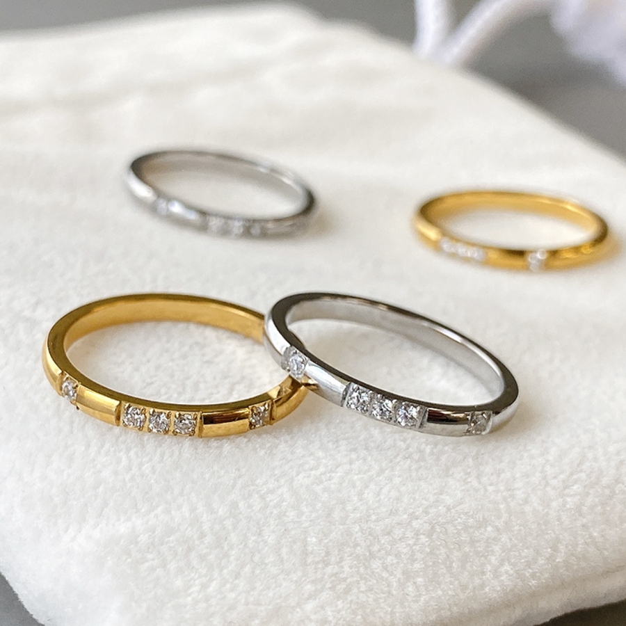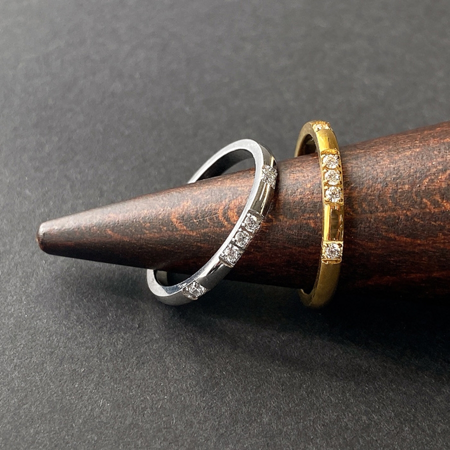 指元を優美に照らしてくれる、ステンレス製ジルコニアストーンリング。