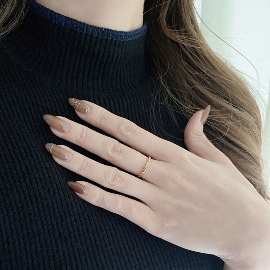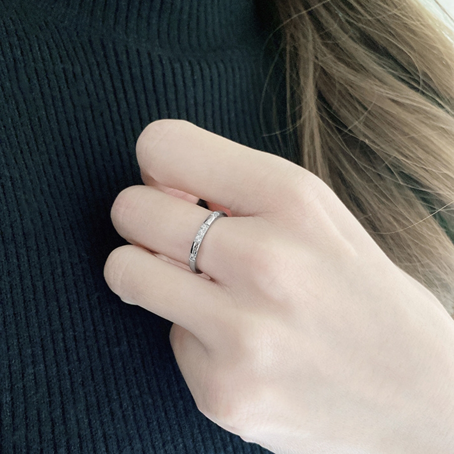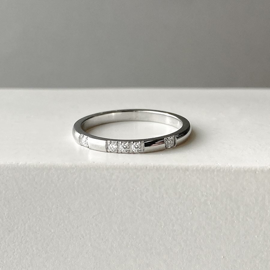 5石の無色透明のジルコニアストーンの輝きが、上品で洗練された雰囲気に格上げします。