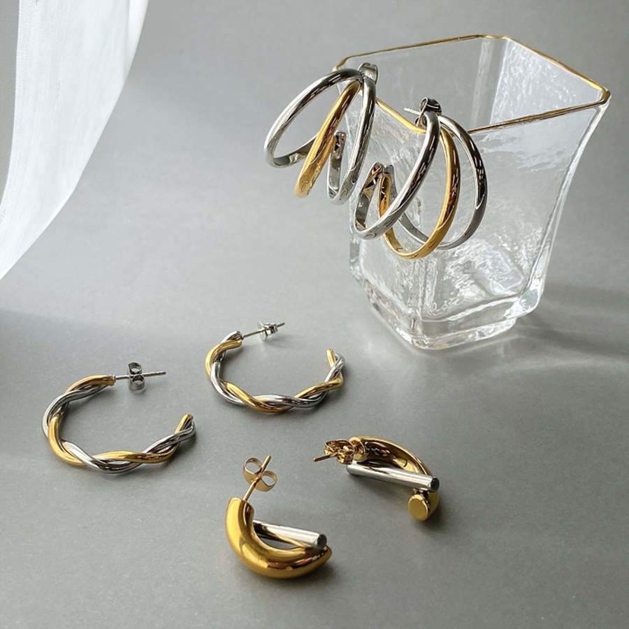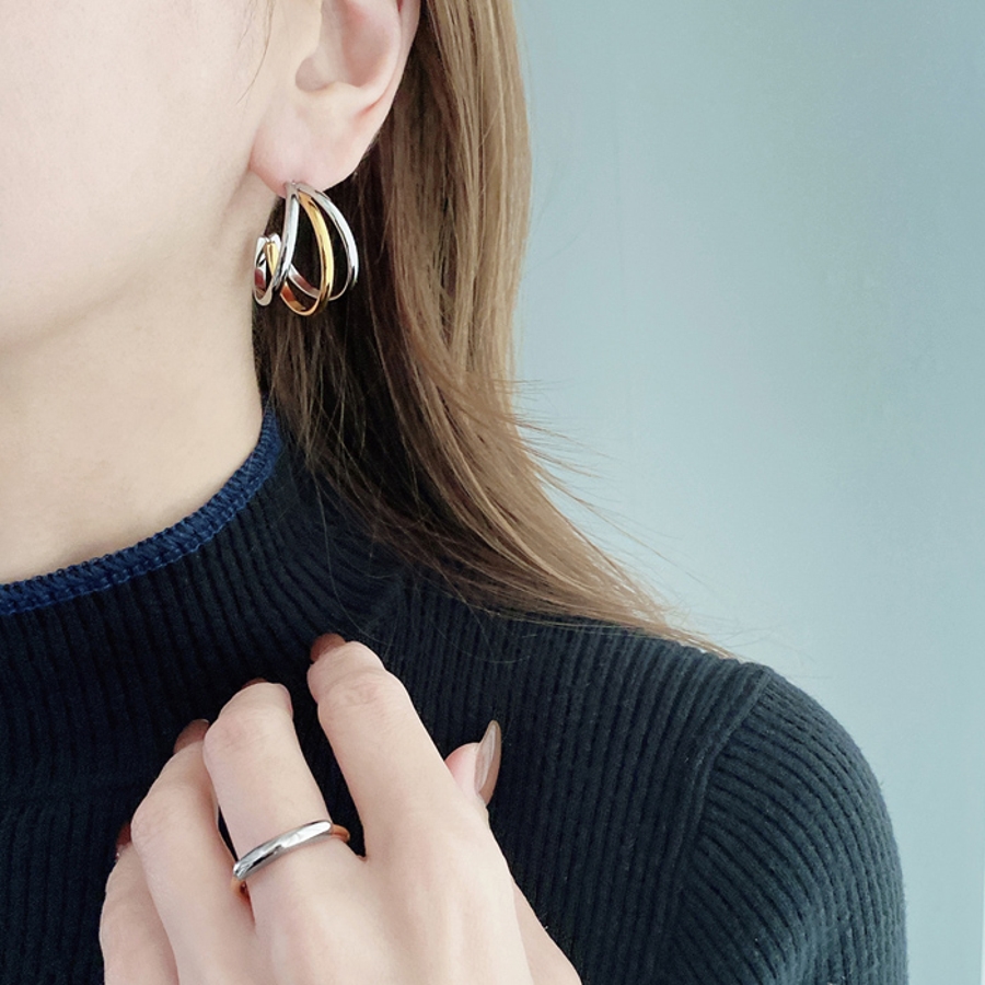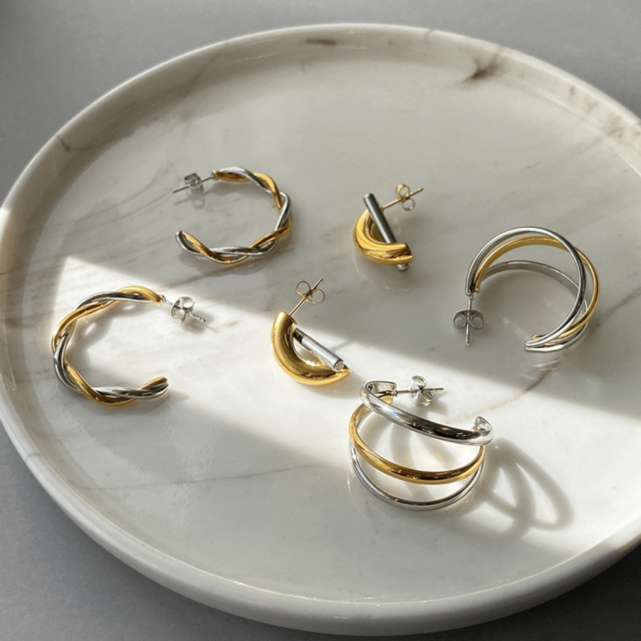 シルバーとゴールドのコンビカラーが耳元をより際立たせ、都会的な雰囲気を加速させます。