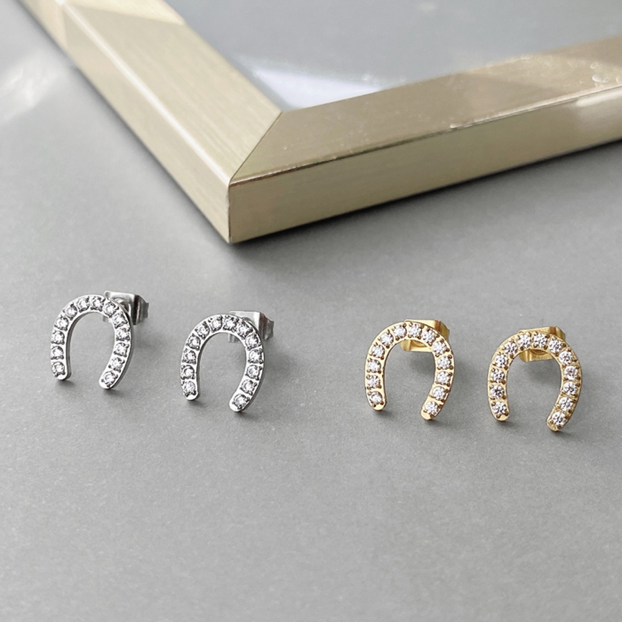 馬蹄ホースシューCZステンレスピアス 馬 アレルギー対応