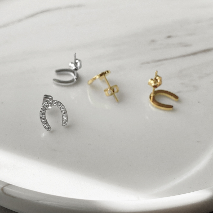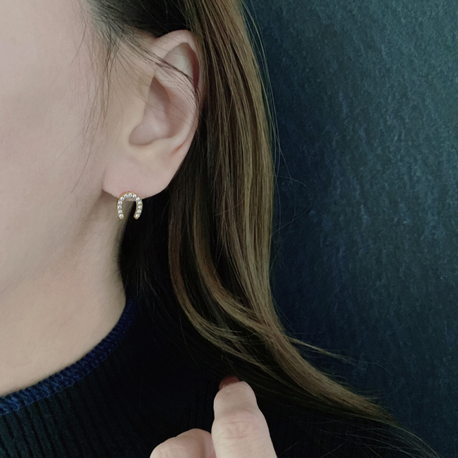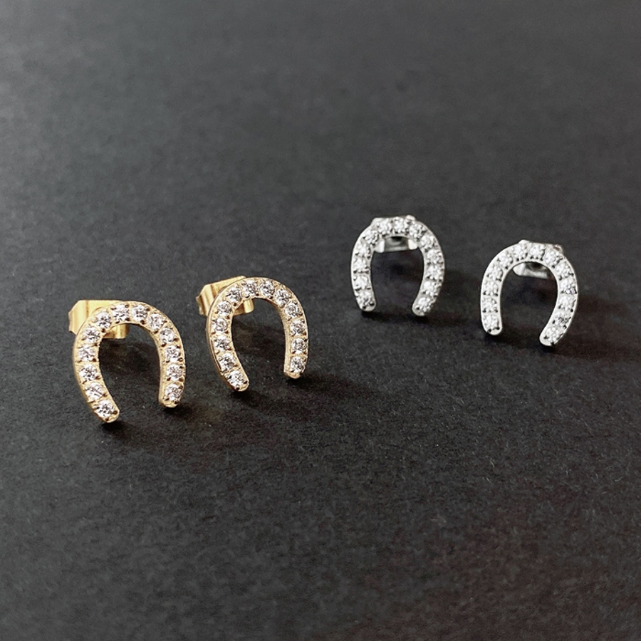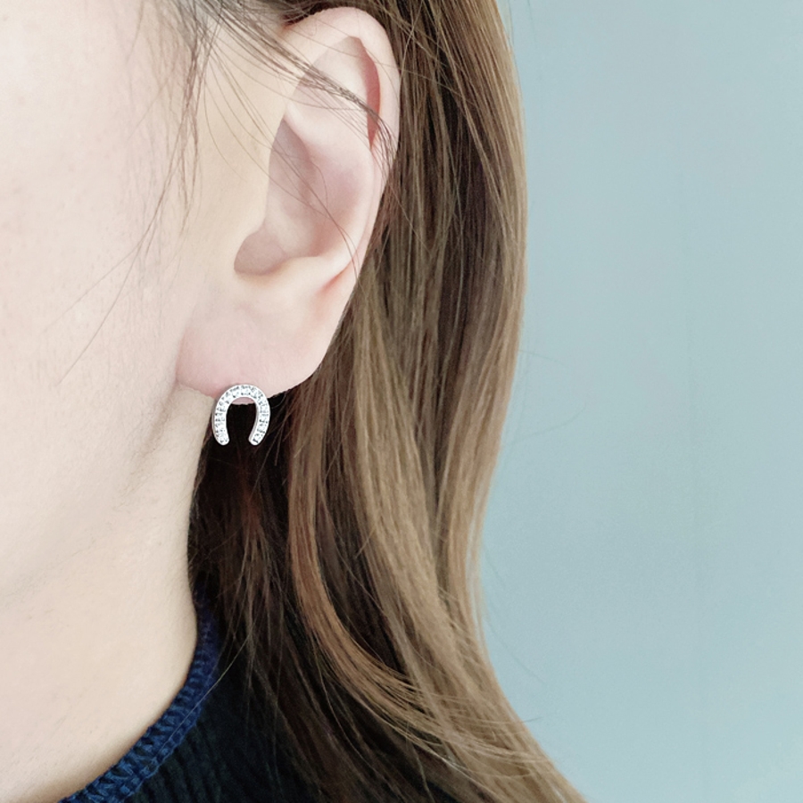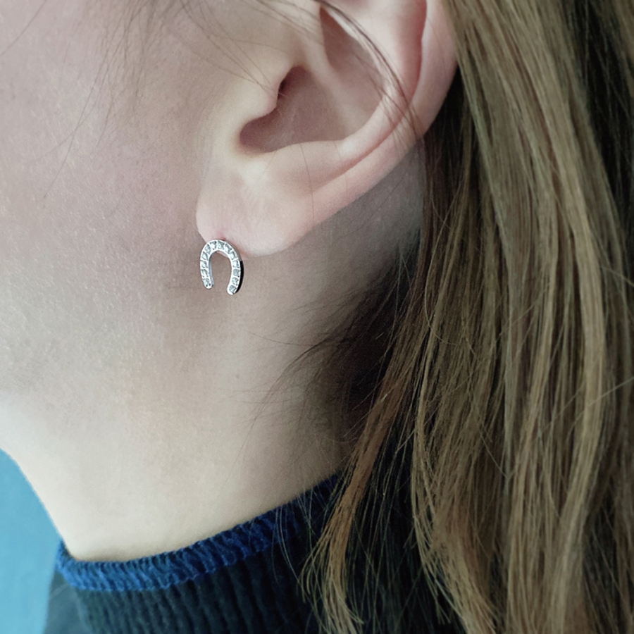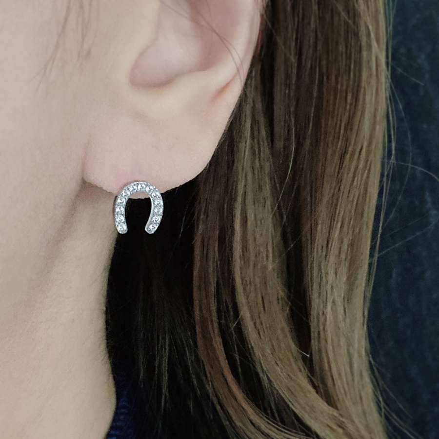 幸運をもたらす馬蹄モチーフのホースシューピアス。