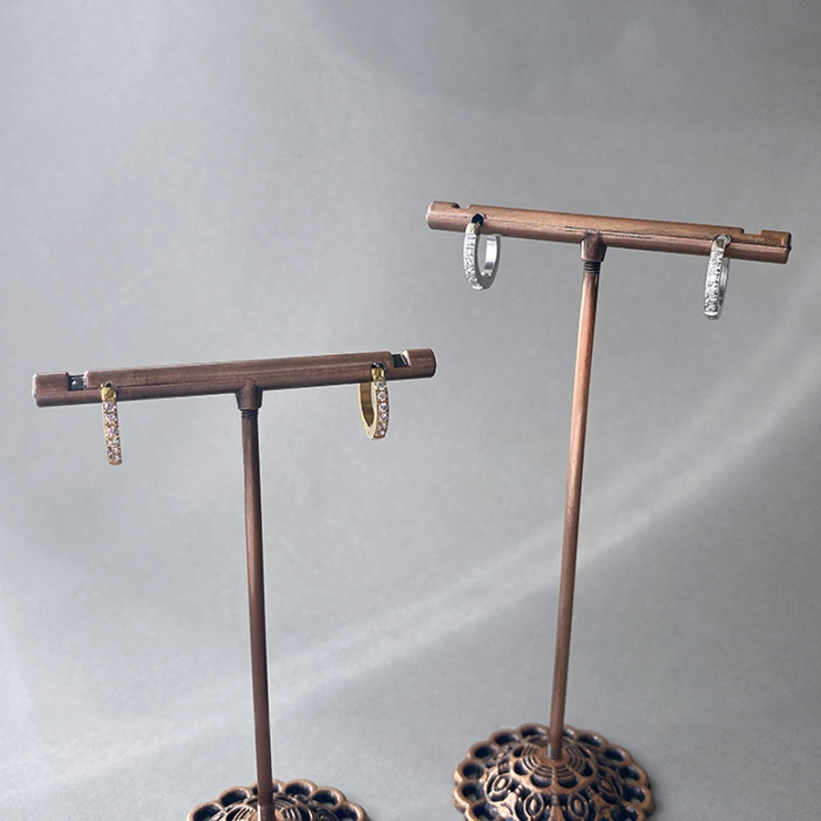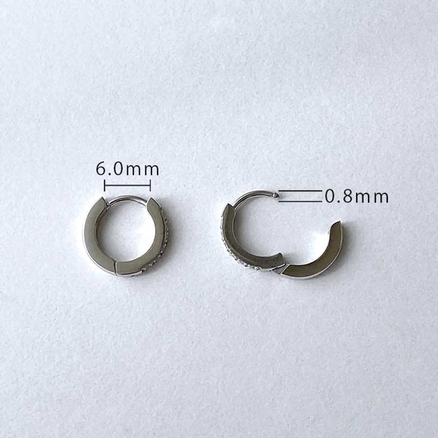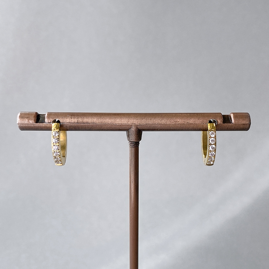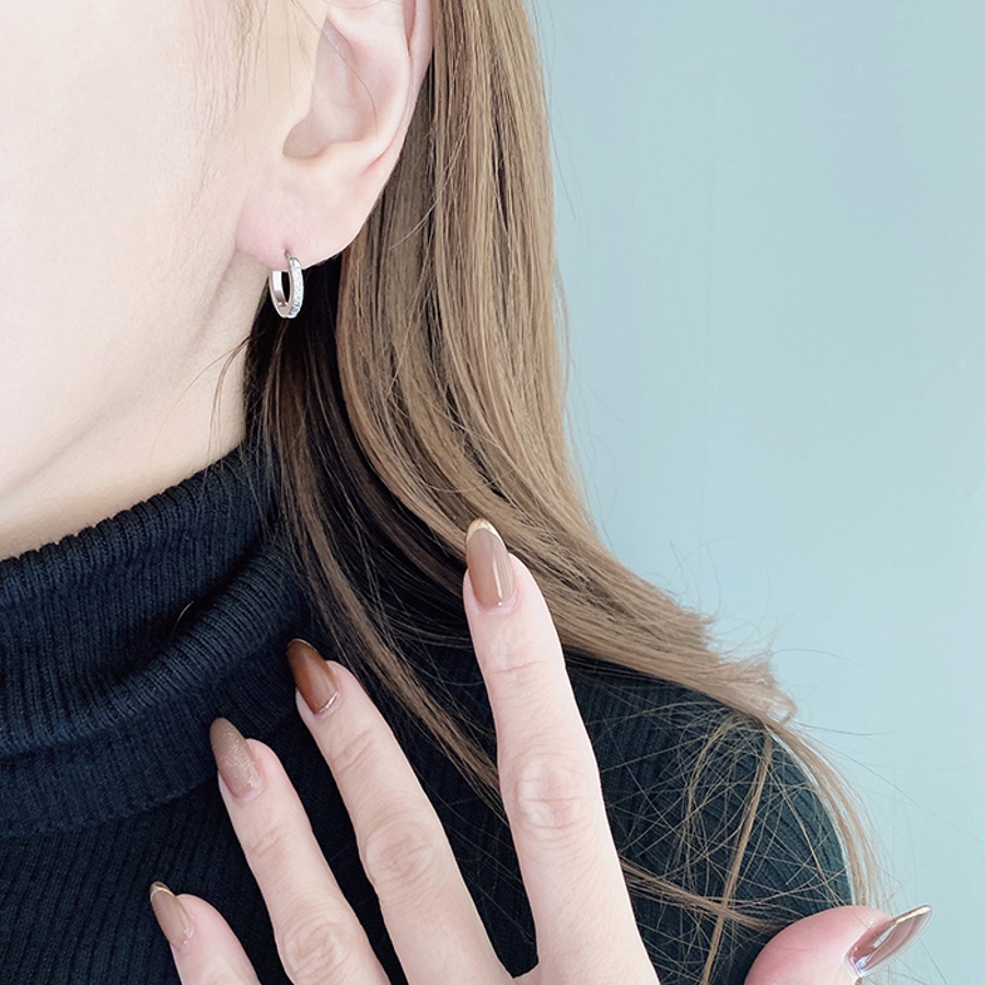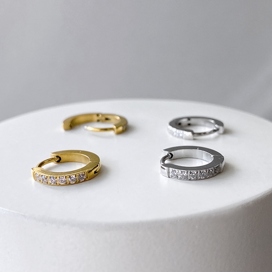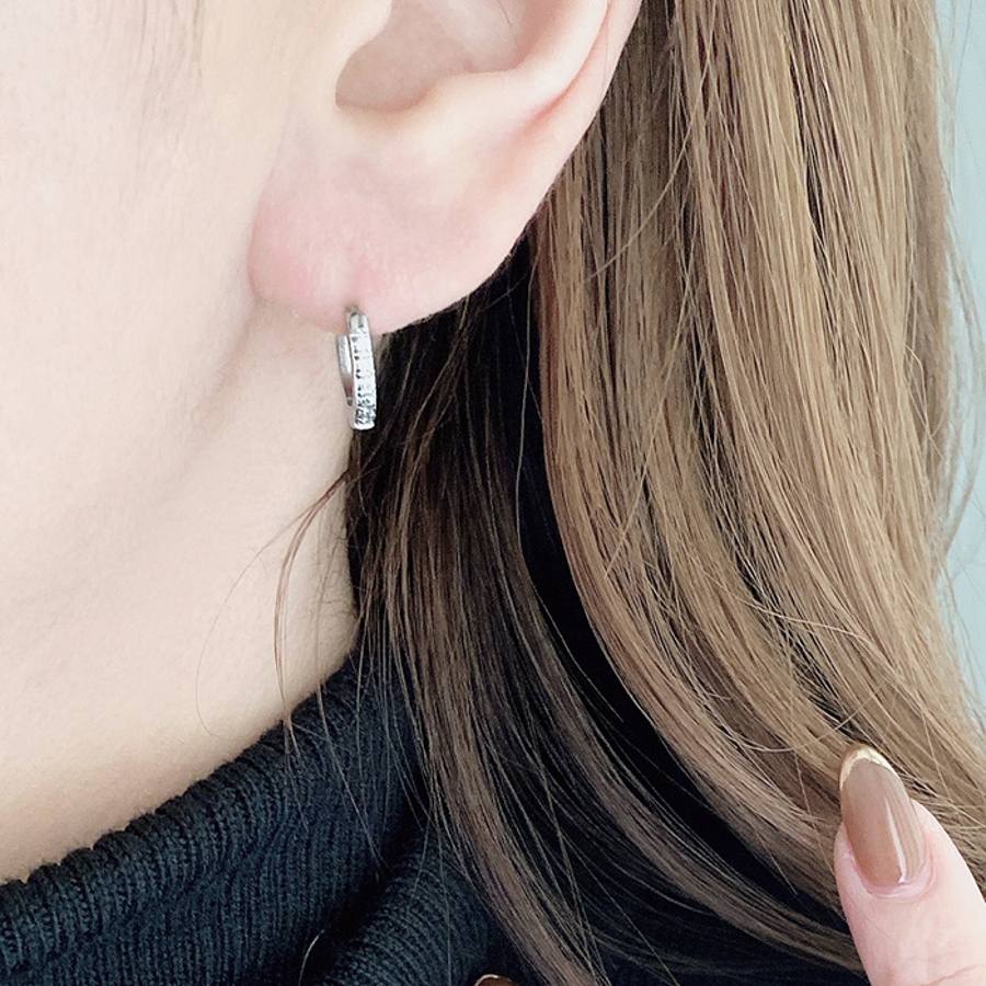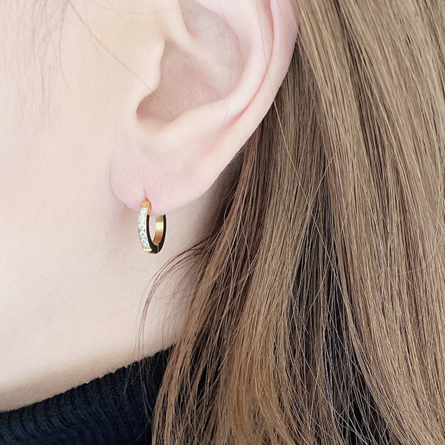 繊細なラインに小粒のジルコニアあしらった、ステンレス製フープピアス。