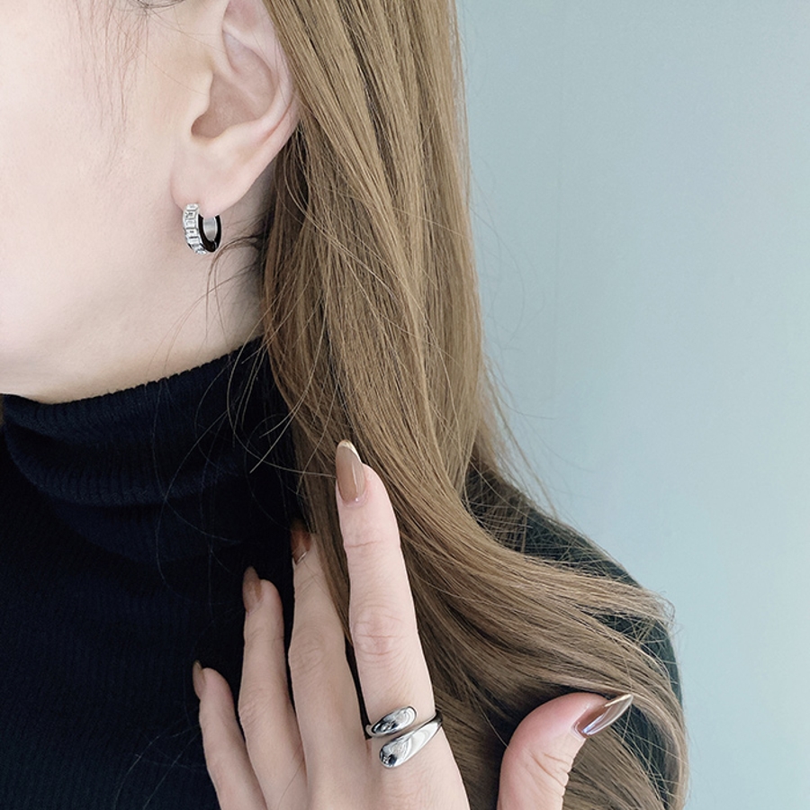 存在感のあるデザインフォルムのワイドワンタッチフープピアス。