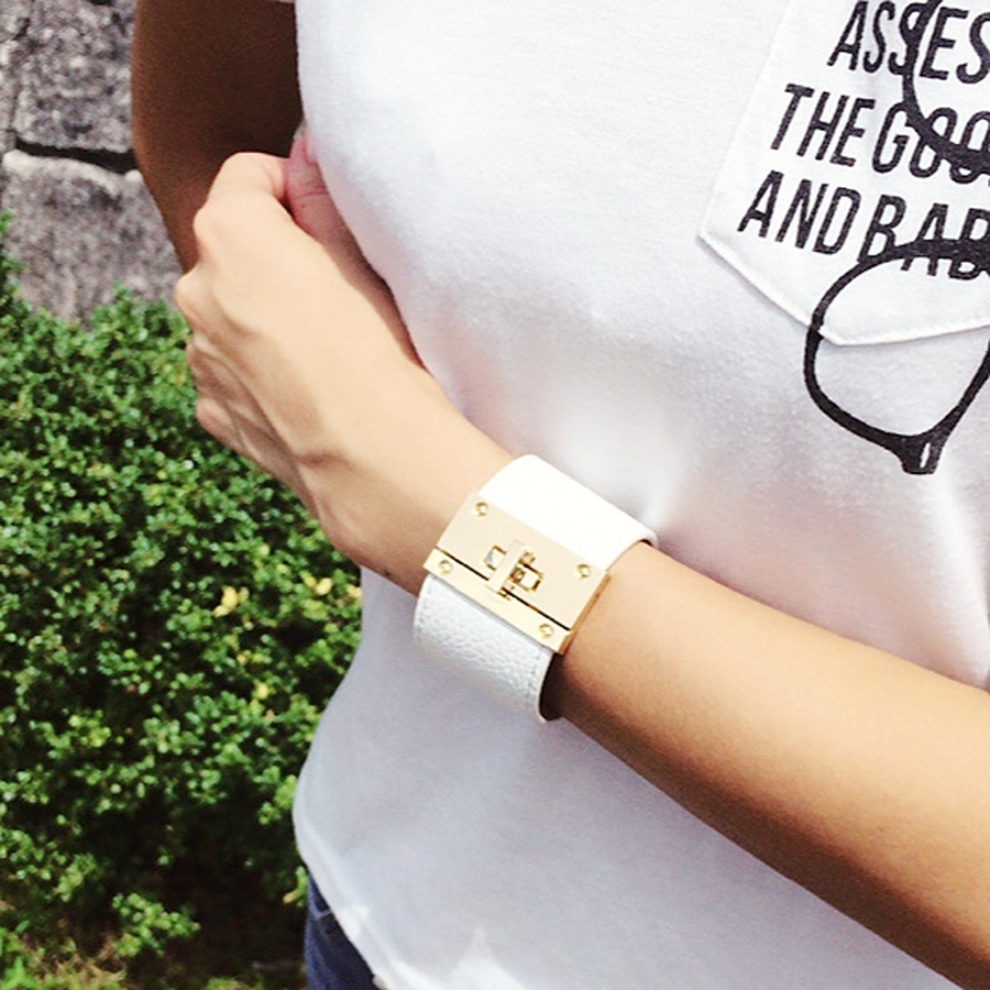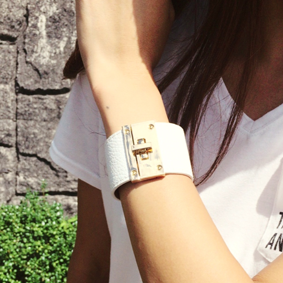 手元のおしゃれに、ゴールドバックルレザーブレスレット