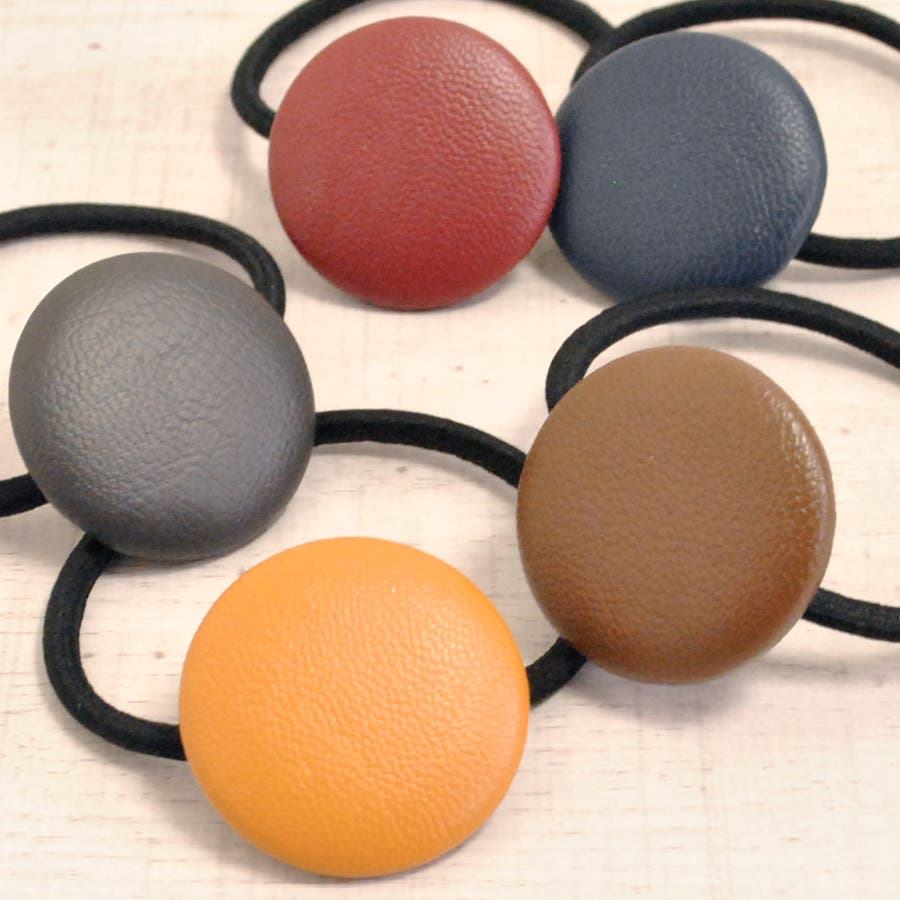 PUレザーボタンヘアゴム ヘアポニー ゴムブレス