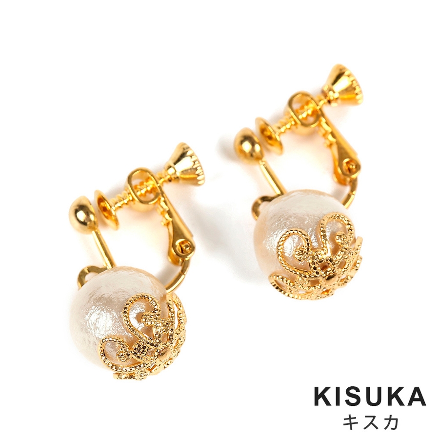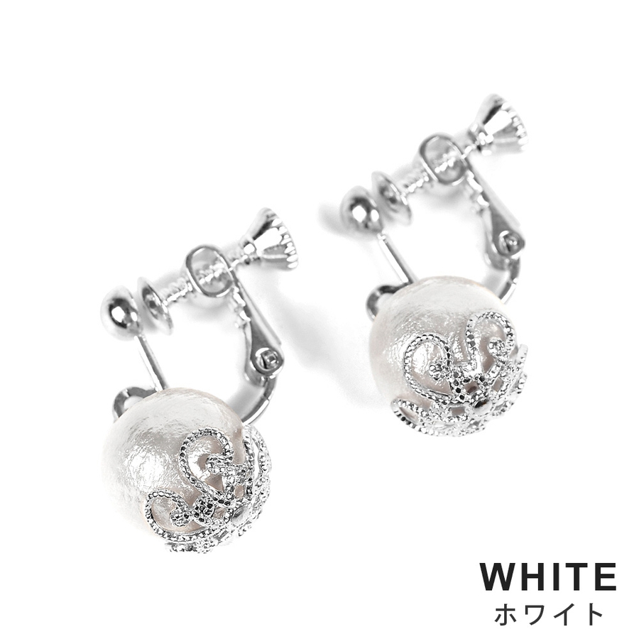 コットンパールぶらイヤリング ホワイト キスカ