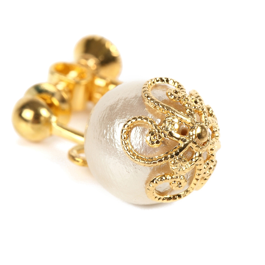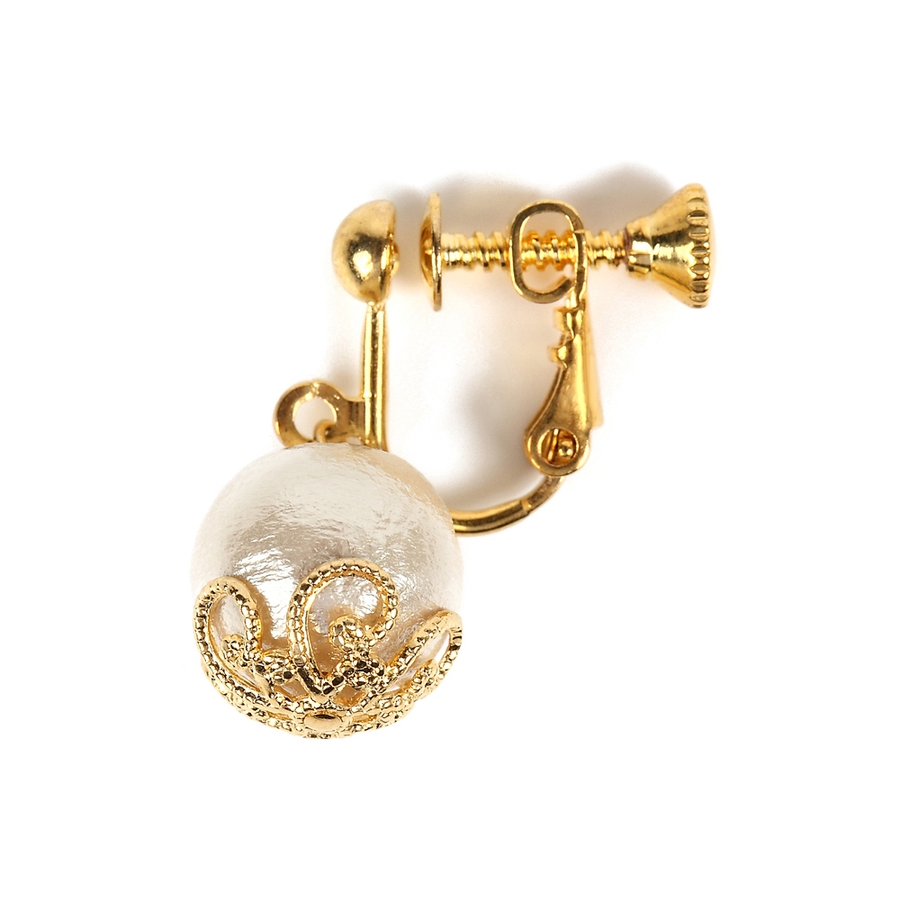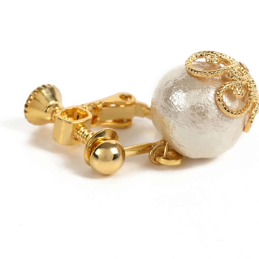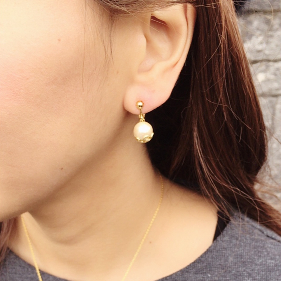 一粒で可愛く揺れる、コットンパールイヤリング
