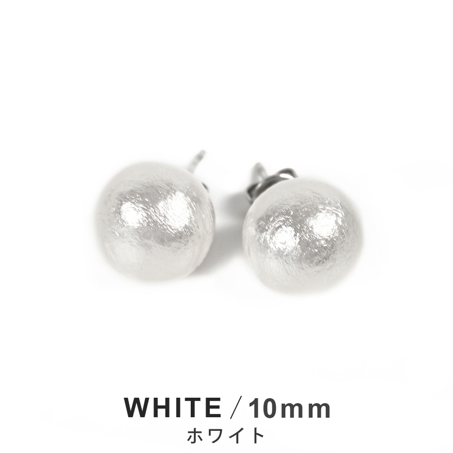 コットンパール10mmスタッドピアス ホワイト キスカ