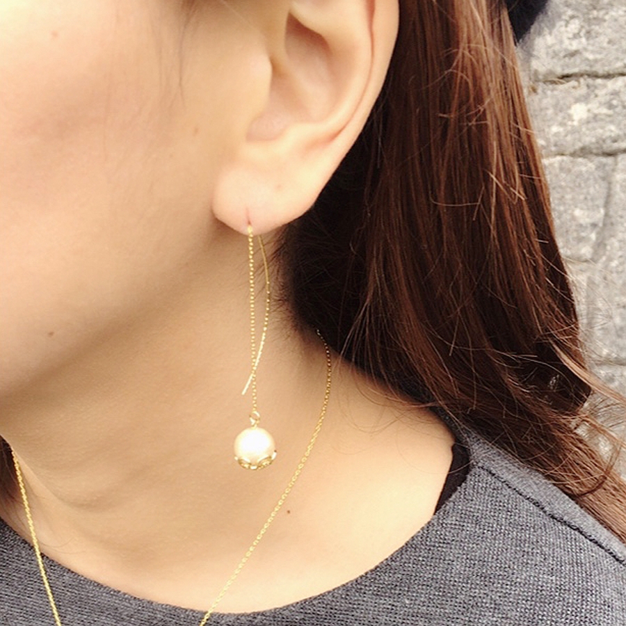 揺れるチャーム&チェーン、コットンパール アメリカンピアス