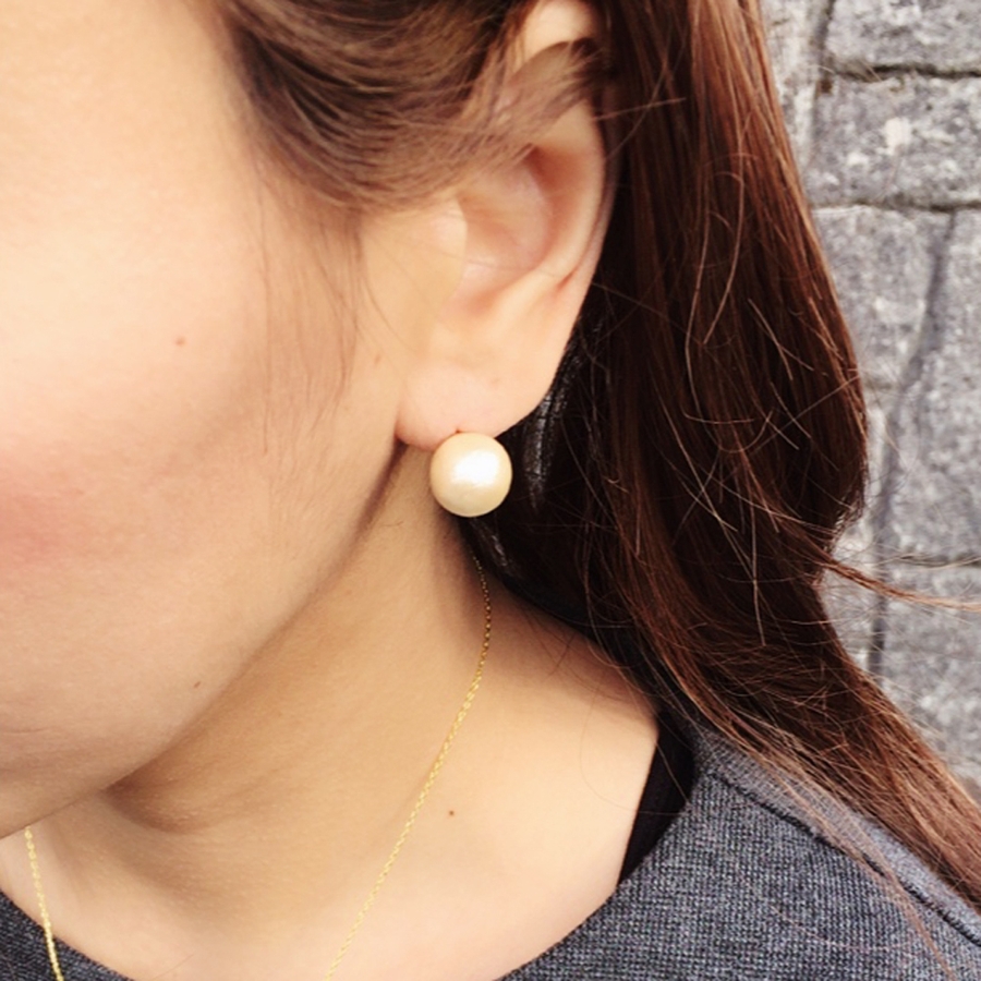 コットンパール12mmスタッドピアス 大珠 ホワイト
