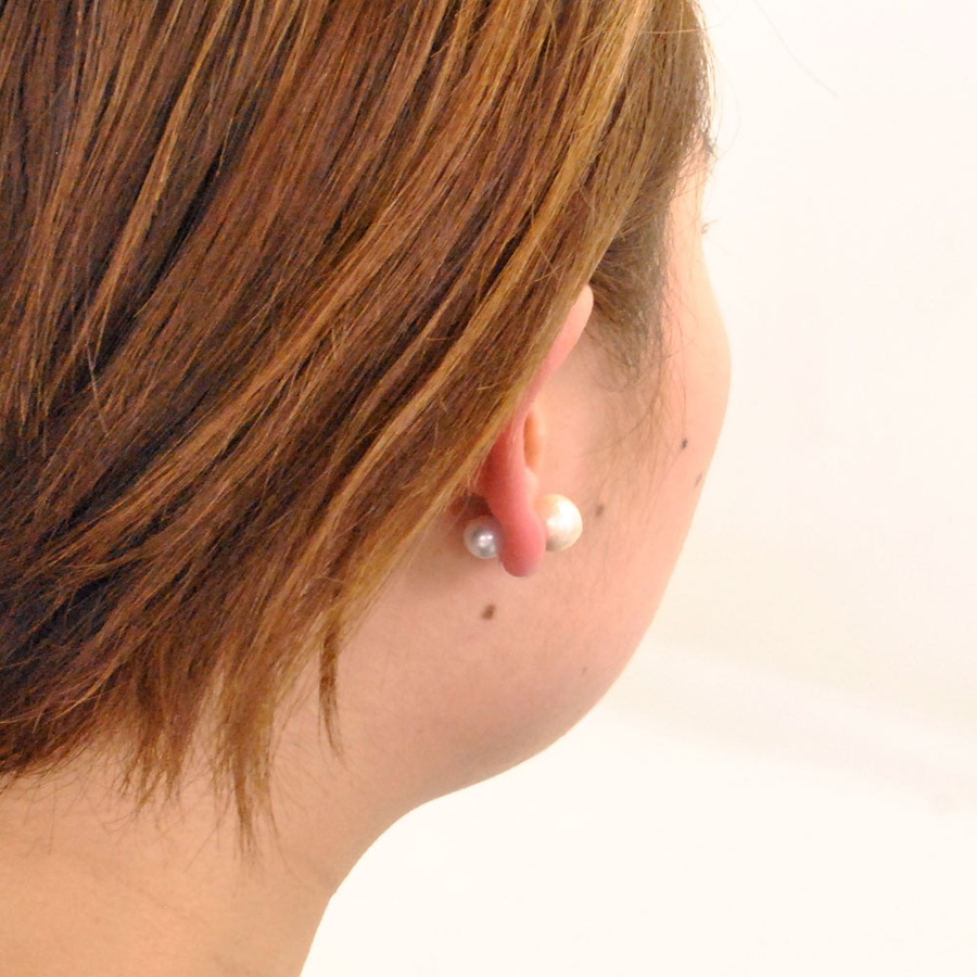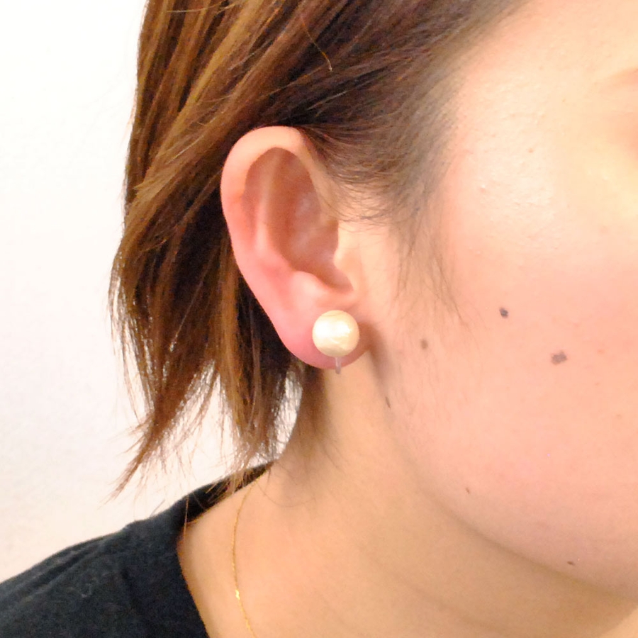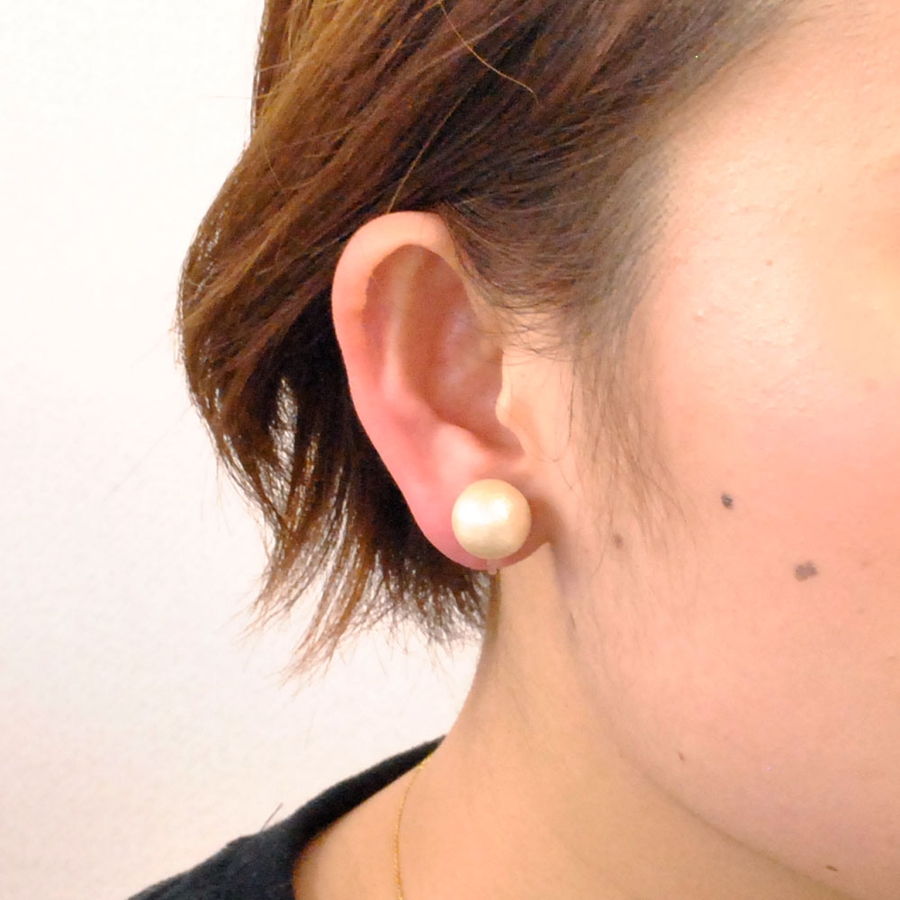 コットンパールリバーシブル樹脂イヤリング 大珠 ノンホールピアス