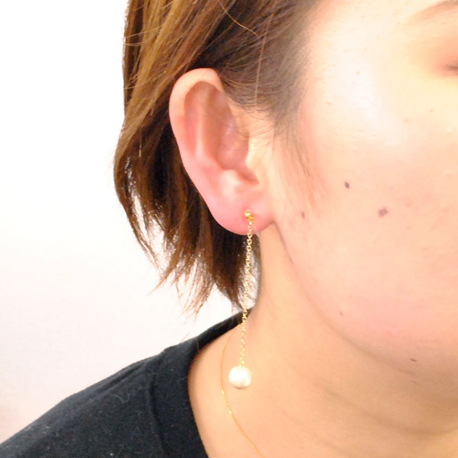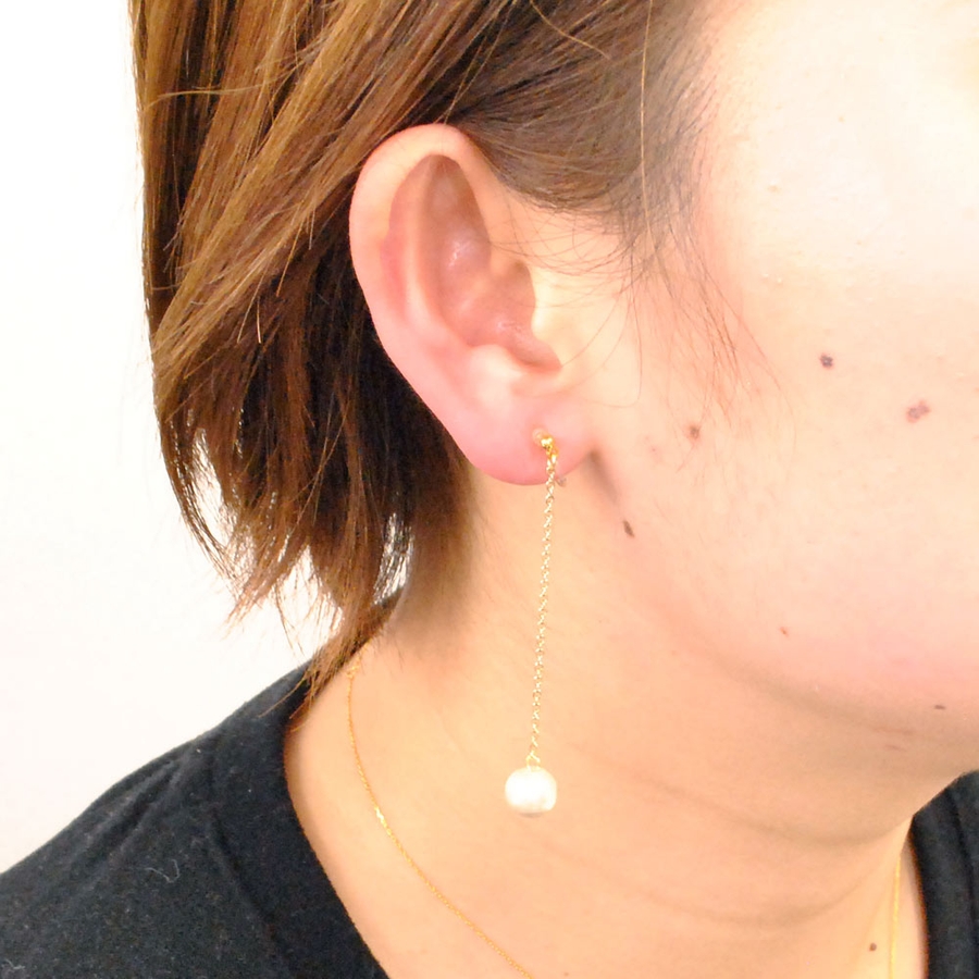 独特の柔らかな光沢を放つコットンパールのチェーンイヤリング ♪