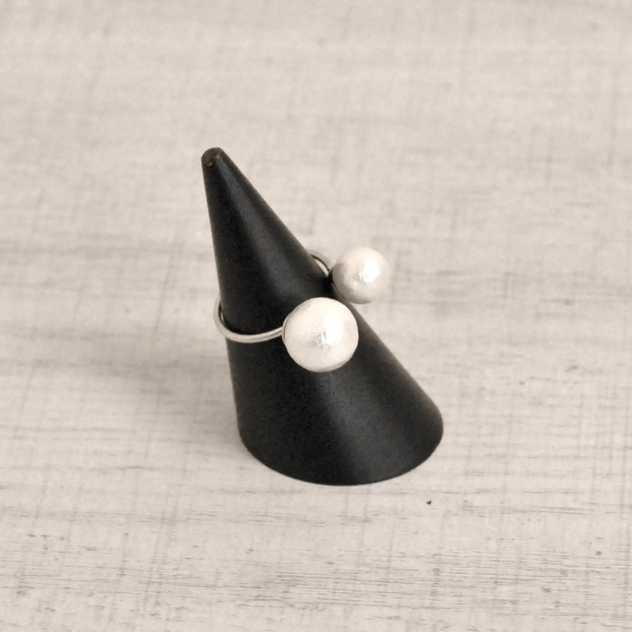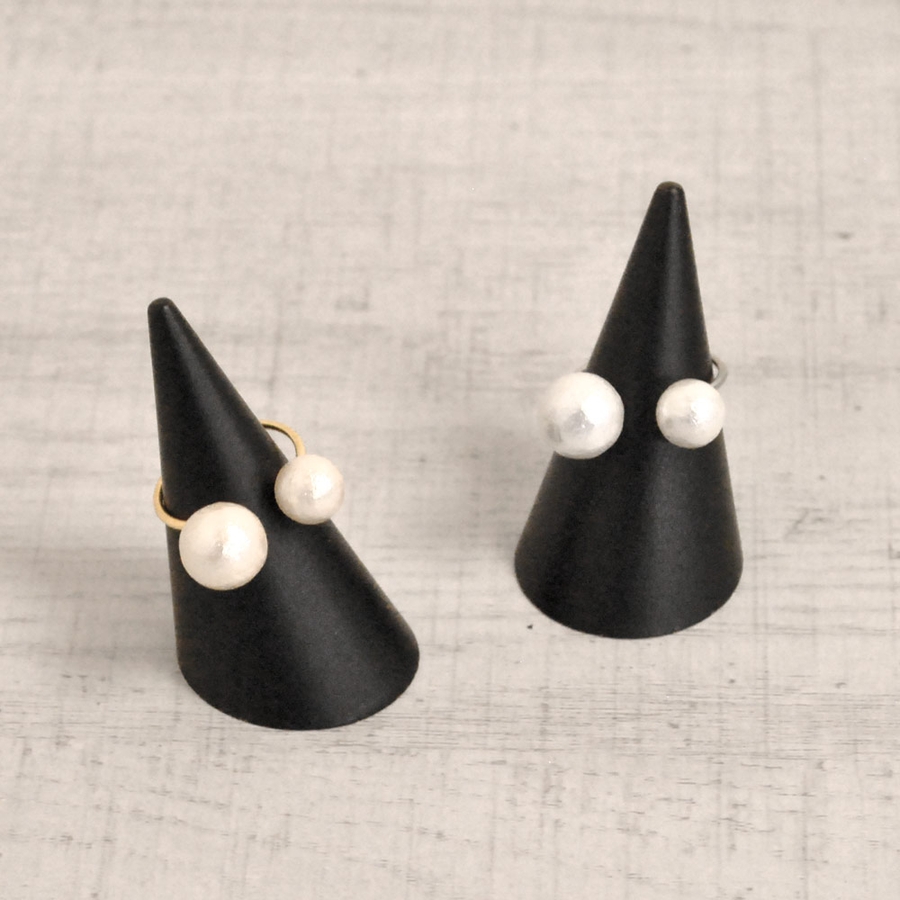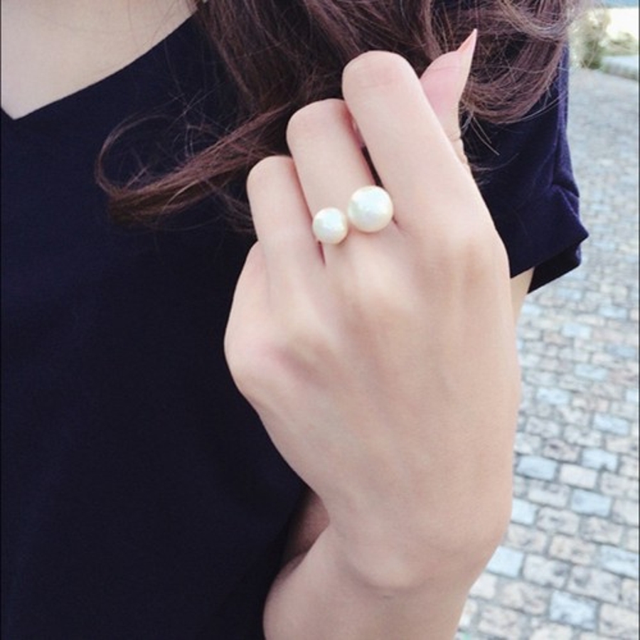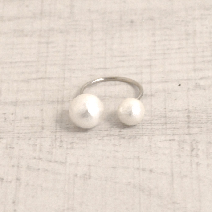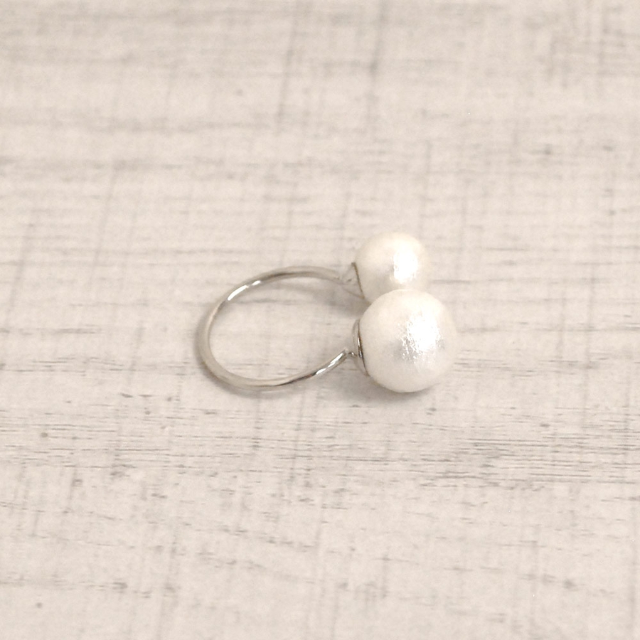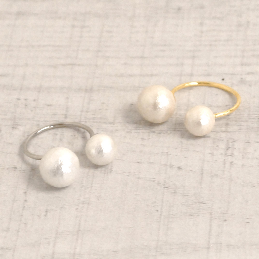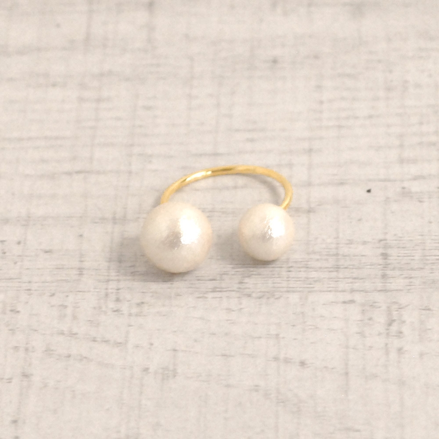 コットンパール フォークリング 指輪日本製スカホワイトフリーサイズシルバーゴールド