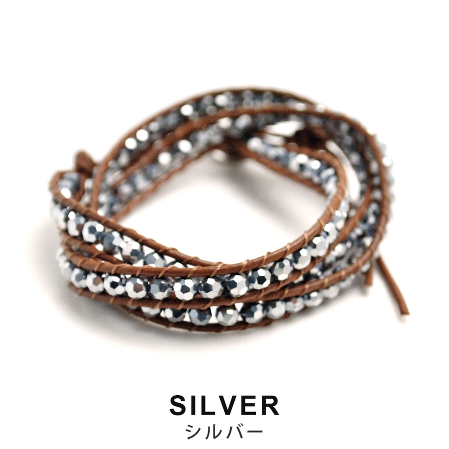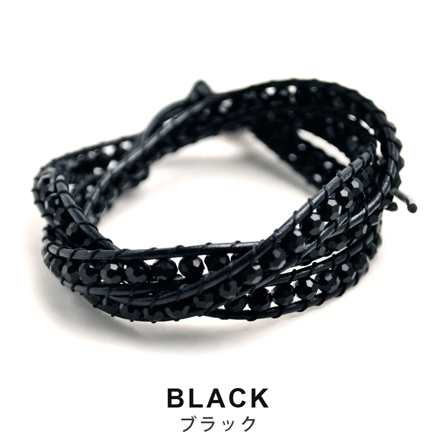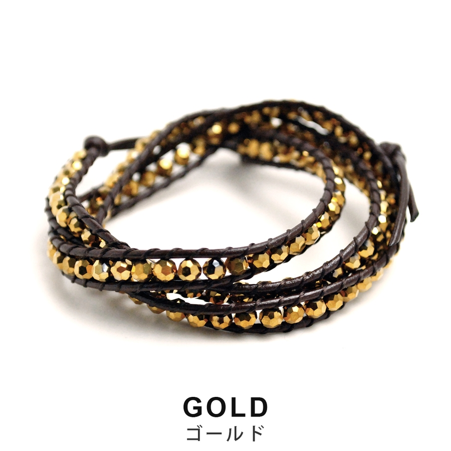 3連ビーズレザーブレス ブレスレット ラップブレス