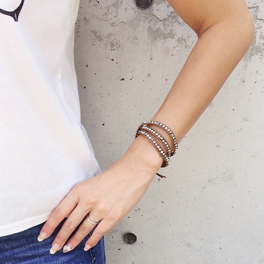 海外セレブにも人気が高いクリスタルレザーブレスレット。