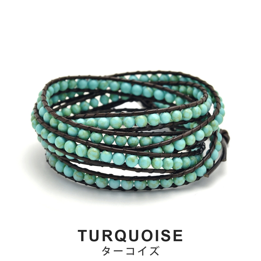海外セレブにも人気が高い天然石レザーブレスレット。