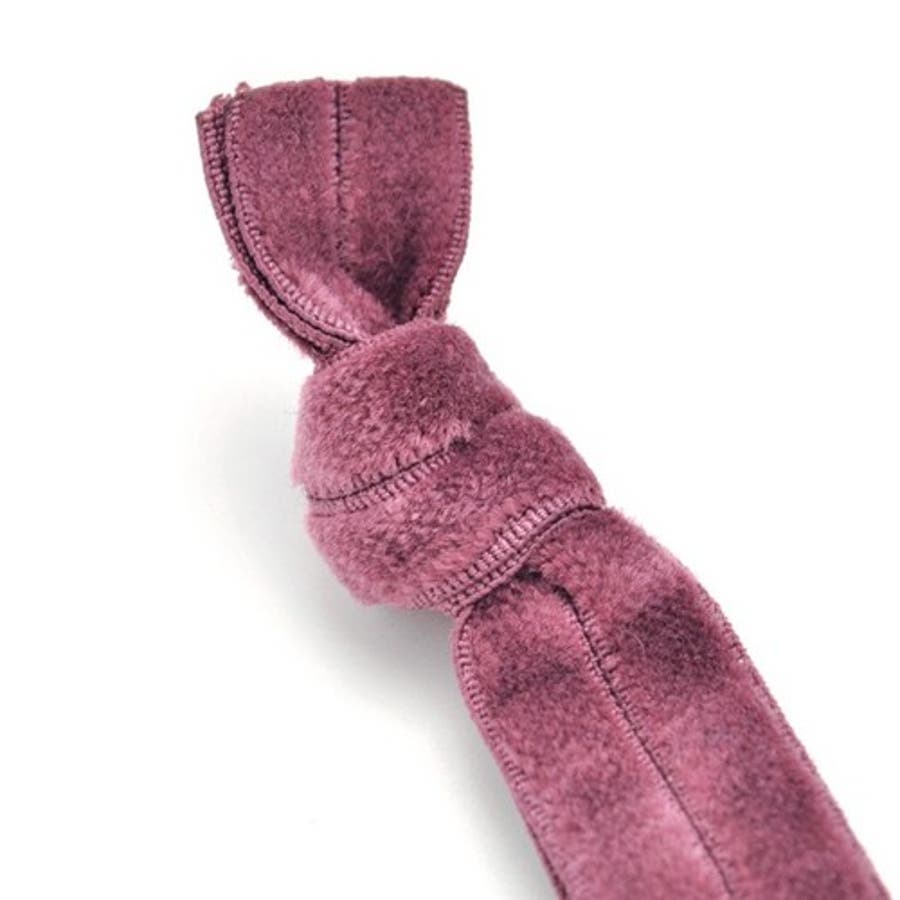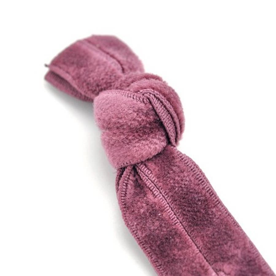 発色の良いやわらかなベロア調のゴムをきゅっと結んだシンプルなデティール。