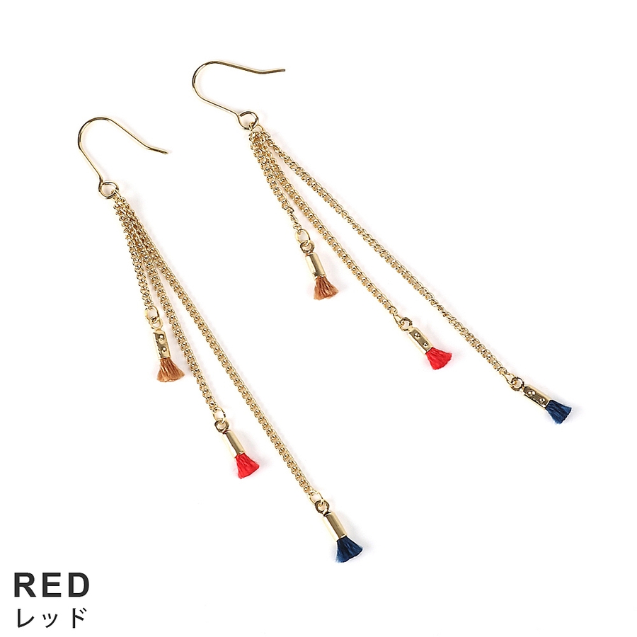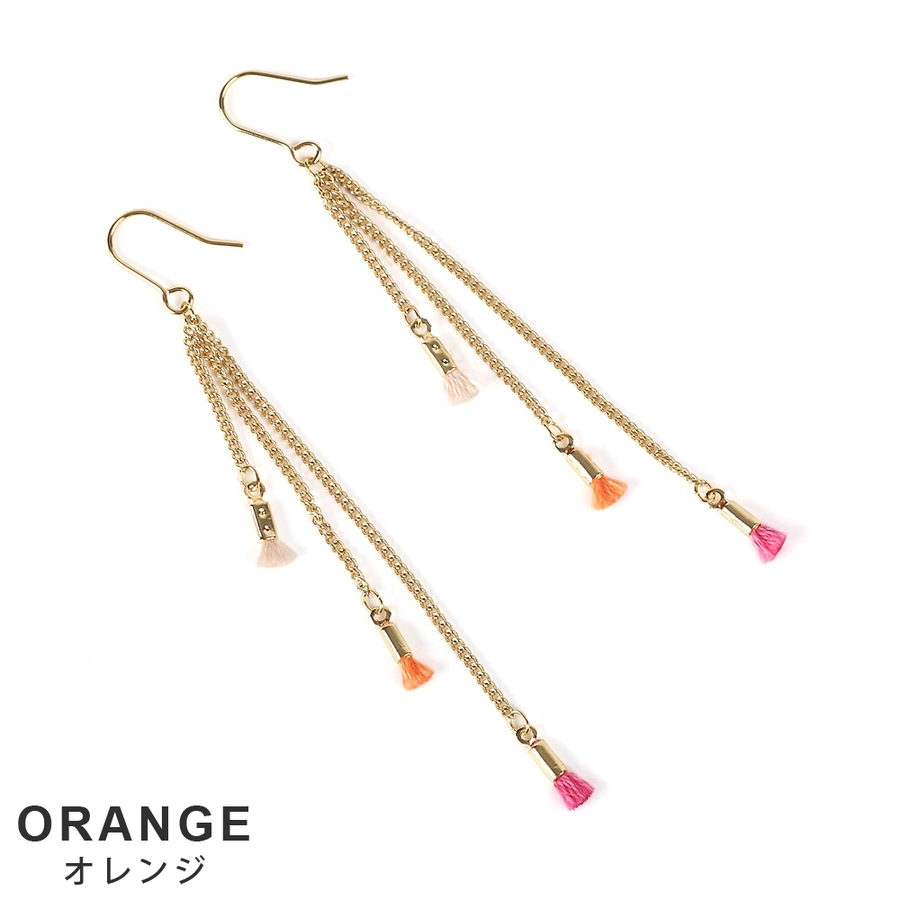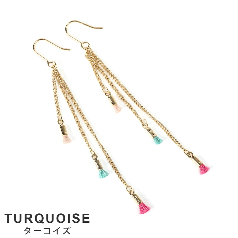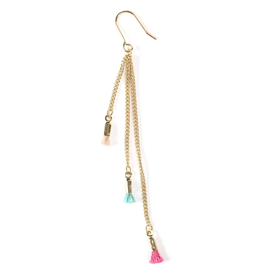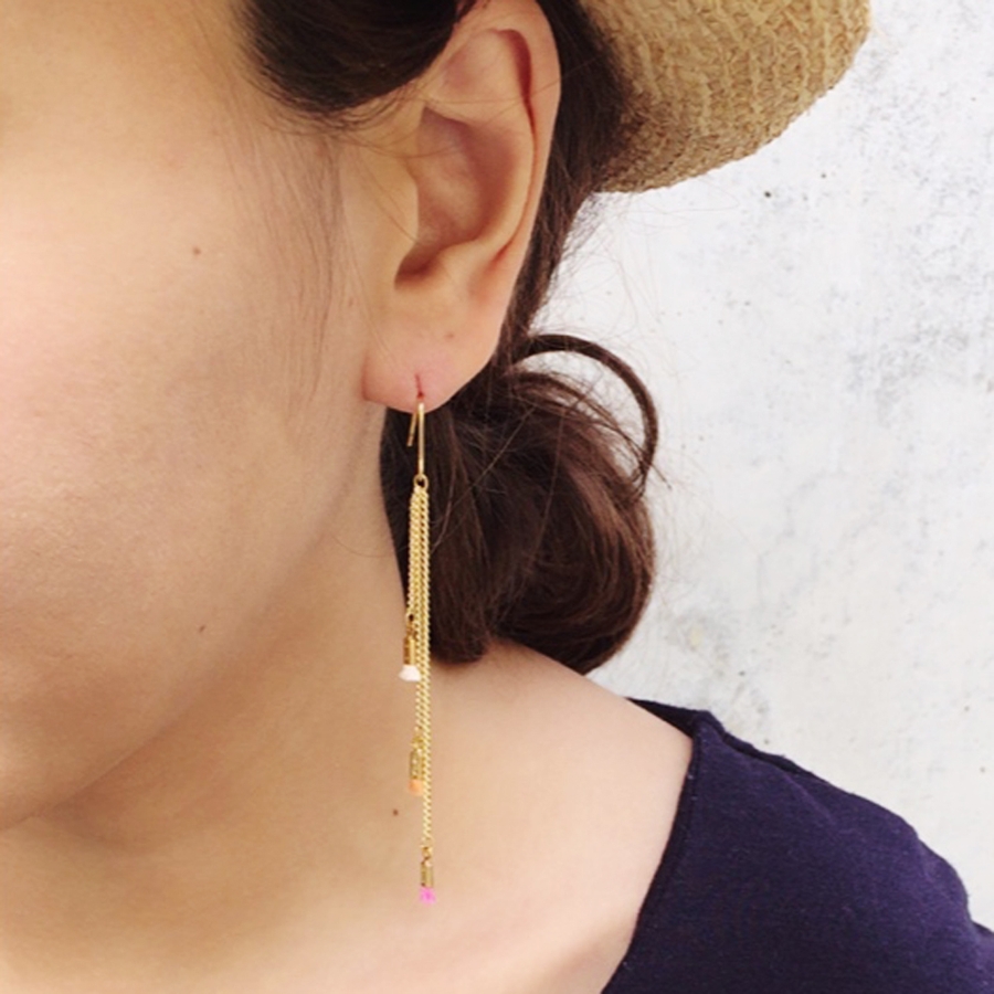 顔まわりに彩りを、3連ラインチェーンタッセルピアス