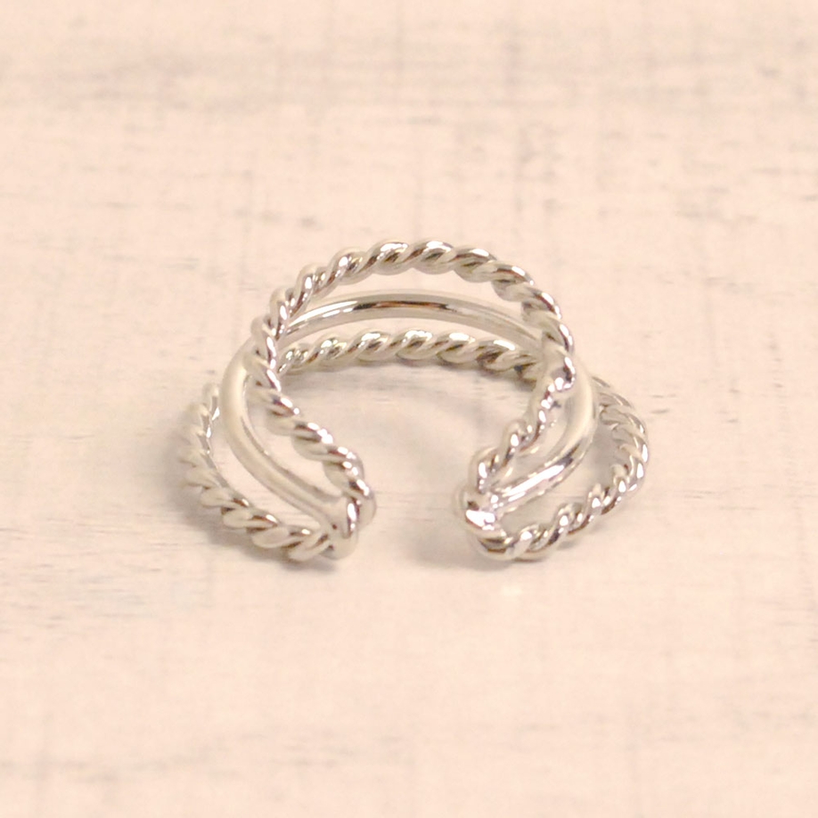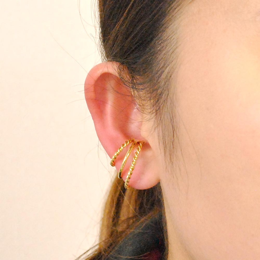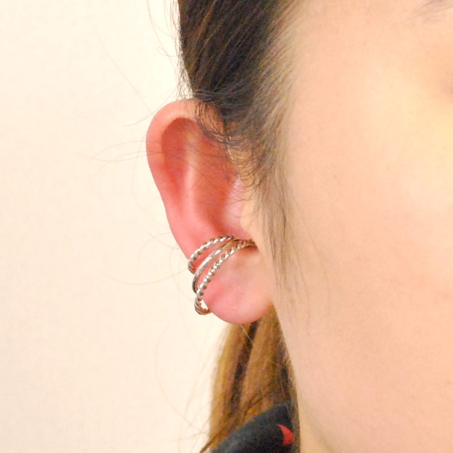 片耳用 幅広3連リングフープイヤーカフ イヤリング風ノンホールトレンド人気