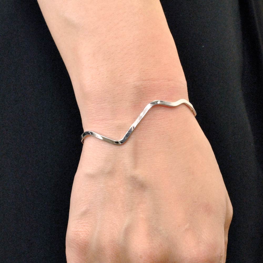 一点でも素敵ですが、細身のデザインなのでお手持ちのブレスレットとの重ねづけも綺麗にまとまりやすいです♪