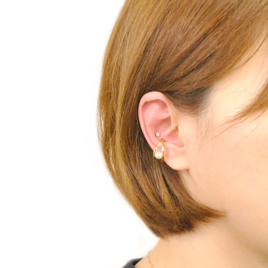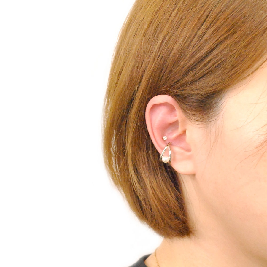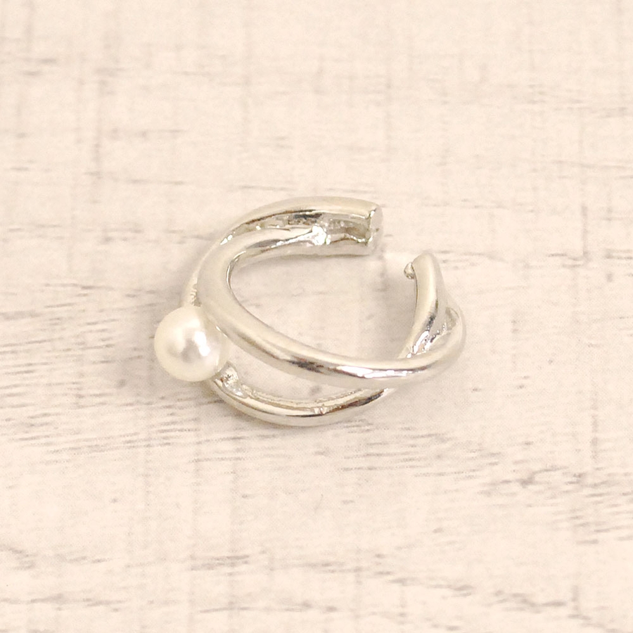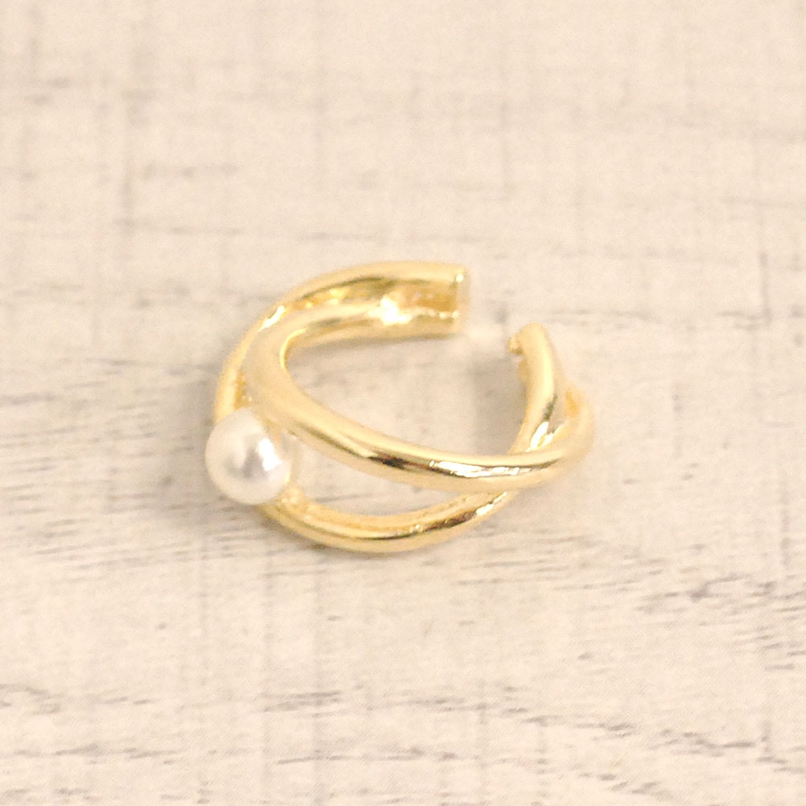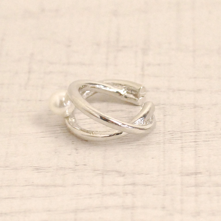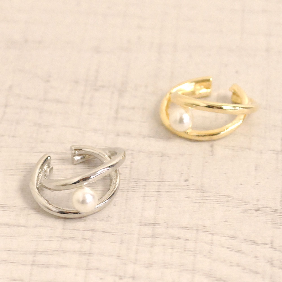 シンプルで立体的なクロスラインが人気のパール付イヤーカフ♪